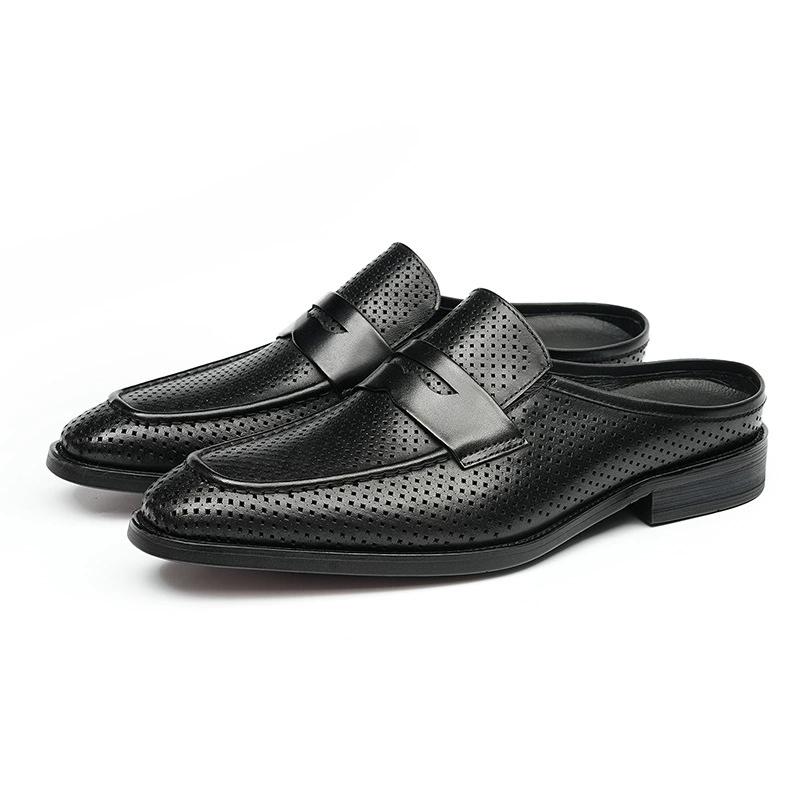 Модные полуботинки с закрытым носком для мужчин, черные мюли, тапочки слипоны из натуральной коровьей кожи с перфорацией, плоские сандалии, мужские, лето 2025