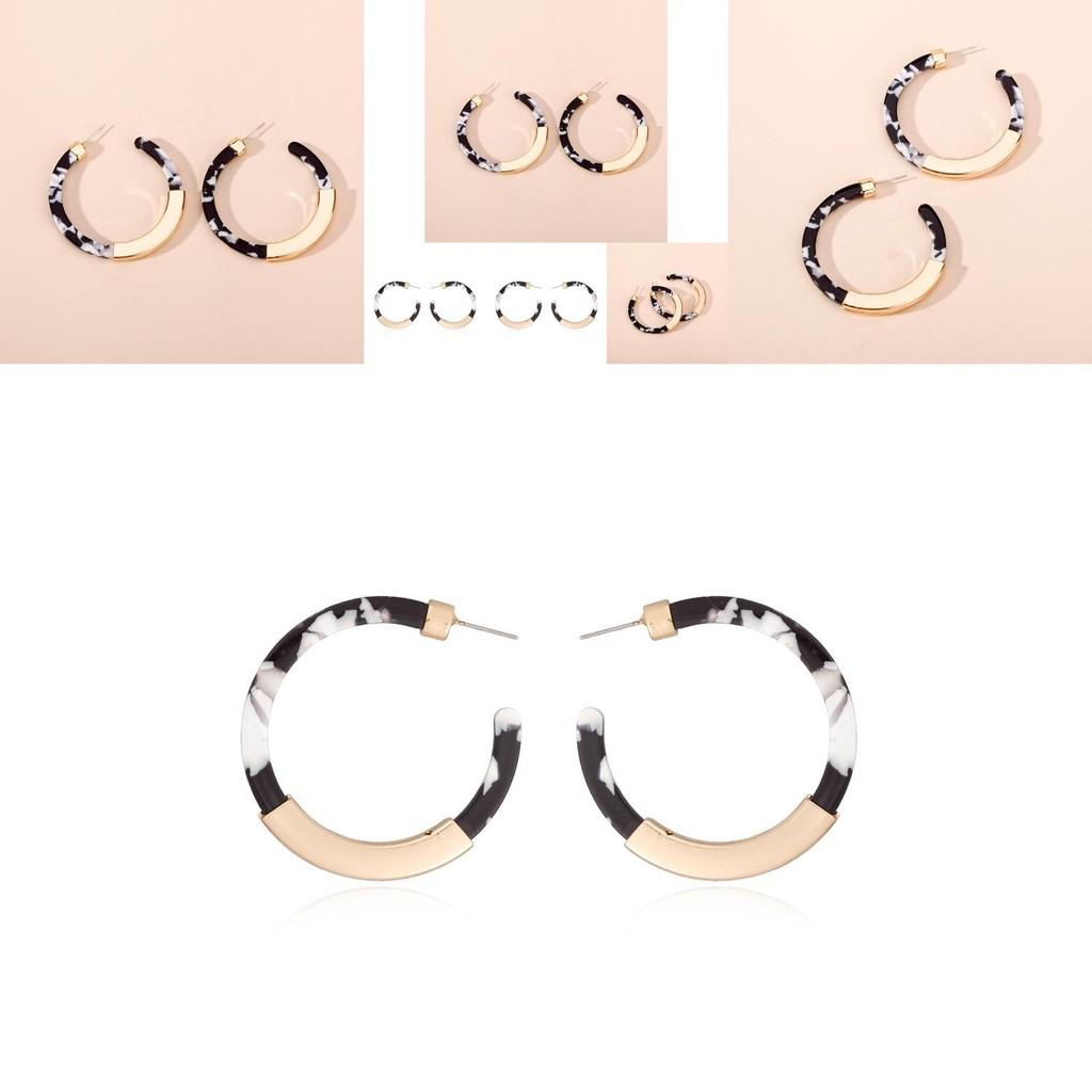 Elegant Geometric Black And White Patterned C-shaped Earrings For Trendy Street Style