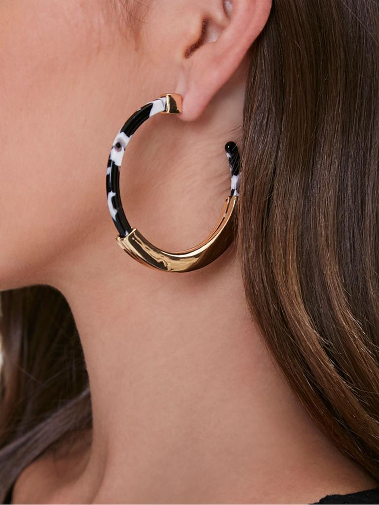 Each pair of earrings undergoes a meticulous electroplating process, ensuring a durable finish that shines with a luxurious touch. The unique black and white cow print pattern, a trendy and eye-catching design element, adds a touch of playful sophistication. This fashionable accessory debuted in the fall of 2021 and has since become a staple for fashion-forward individuals who appreciate both aesthetics and quality.