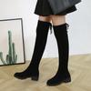Модная женская обувь 2024 года, фирменные женские ботинки со шнуровкой сзади, модные туфли с круглым носком, женские зимние сапоги выше колена на квадратном каблуке