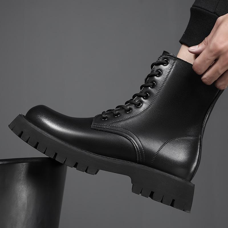 Модные мужские повседневные осенне-зимние ботинки, черные модные туфли на платформе, для вечеринок, ночных клубов, натуральная кожа, красивые массивные ботинки