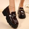 Модная обувь для женщин высокого качества, женские туфли-лодочки на один шаг, осенние, в британском стиле, с круглым носком, металлической отделкой, на массивном каблуке