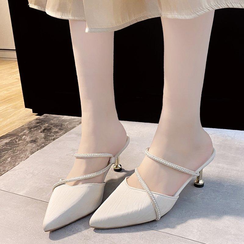 Мода 2024 года Обувь Женские туфли на высоком каблуке с открытой пяткой Брендовые туфли-лодочки Женские туфли с острым носком и кристаллами Туфли на высоком каблуке Женские босоножки