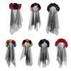 Girls Day of The Dead Flowers Headdress Long Ribbon Veil Gothic Head Hoop Party Cosplay