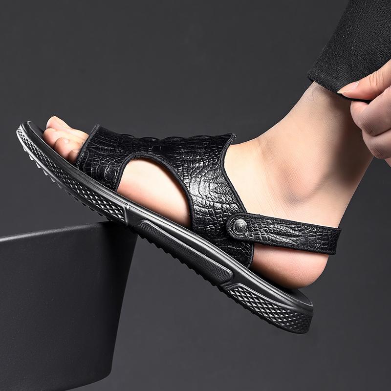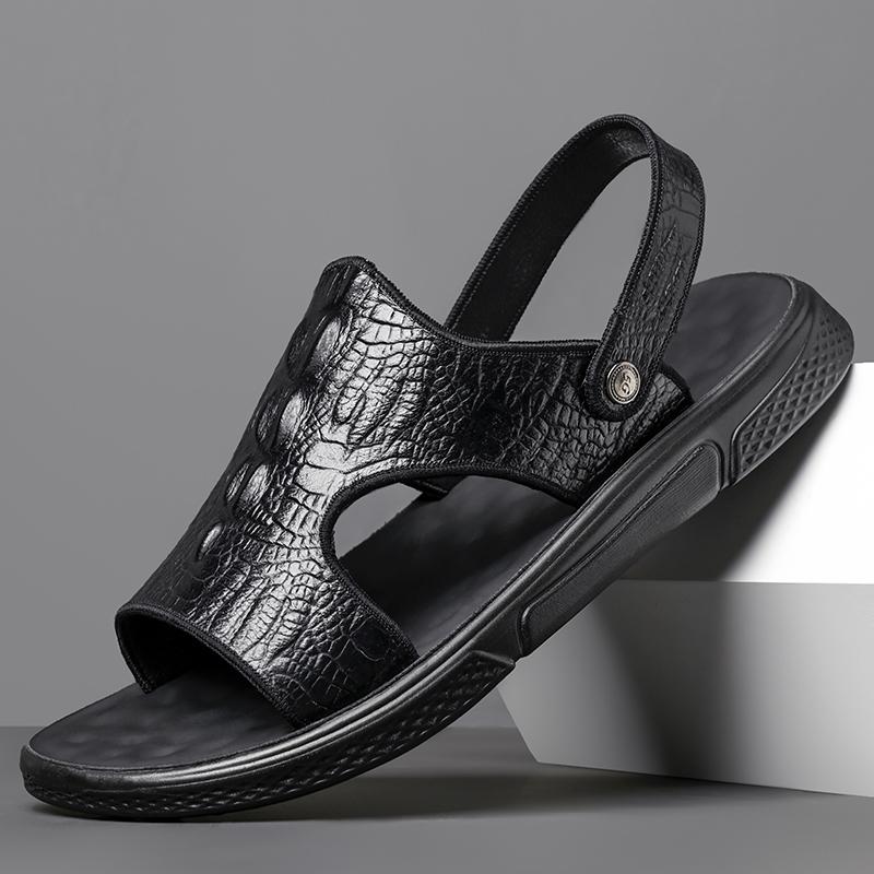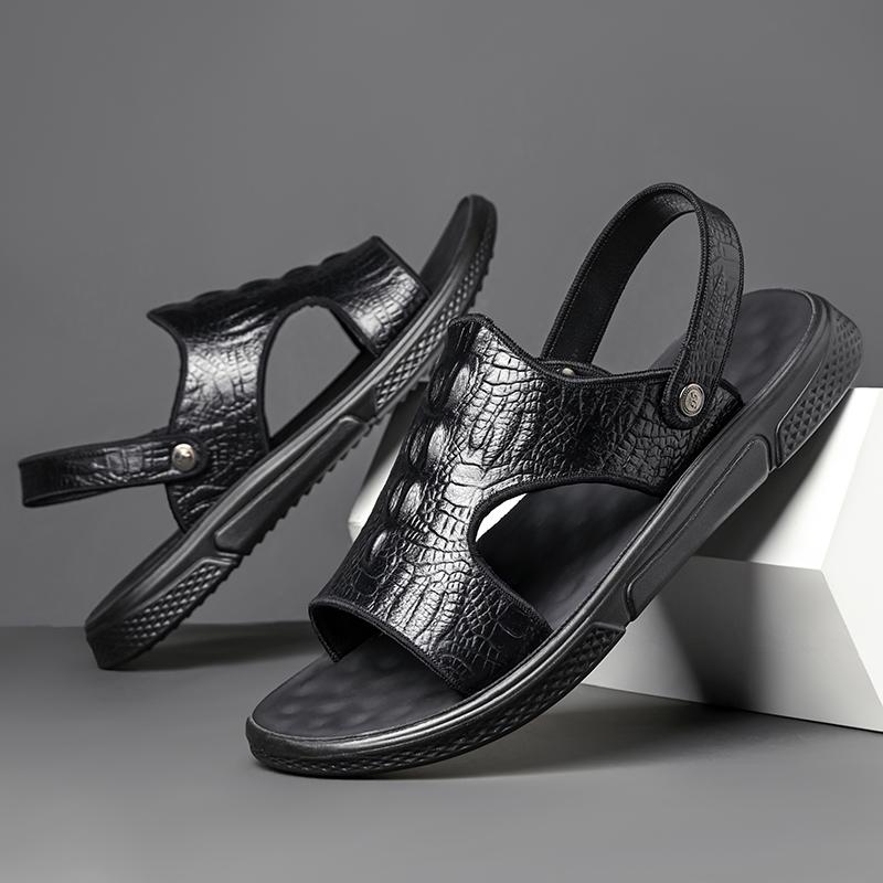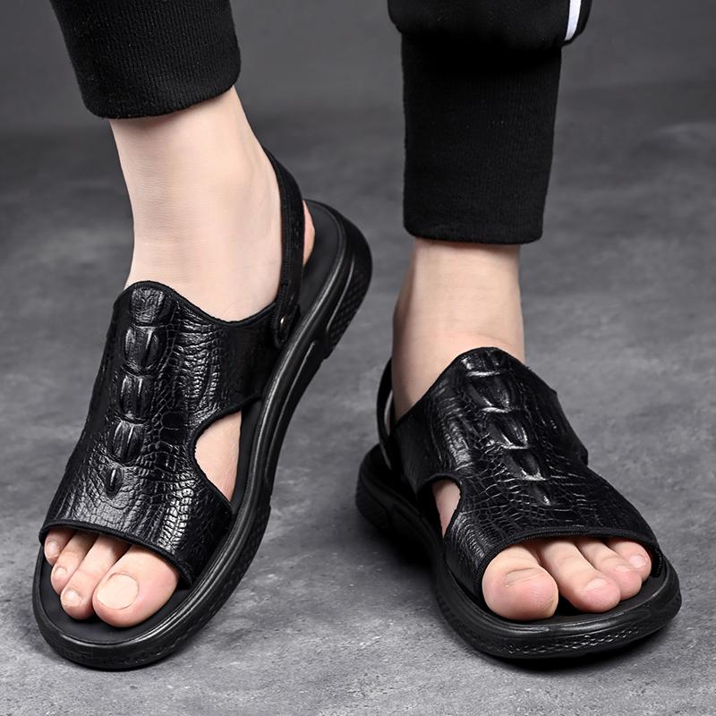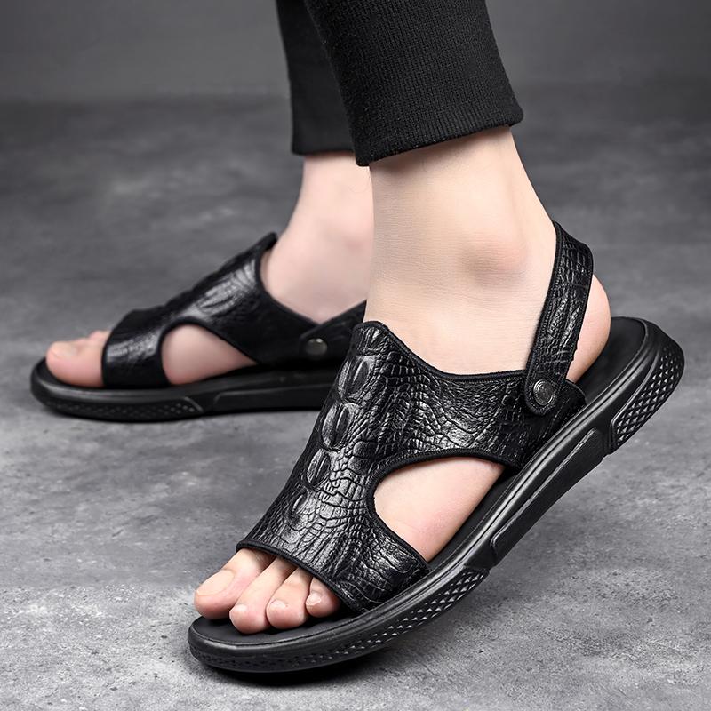Модные Классические Мужские Сандалии Летние Сандалии с Крокодиловым Узором Дышащие Мужские Кожаные Туфли Роскошные Сандалии Мягкие Уличные Мужские Римские Сандалии