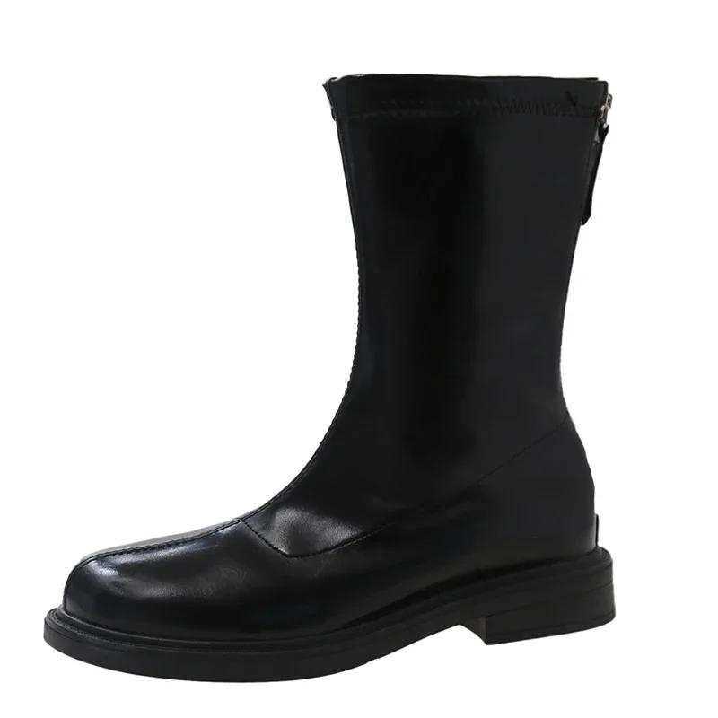 Мода 2024 года, высококачественная женская обувь, женские сапоги с молнией сзади, модные, с круглым носком, современные сапоги, женские ботильоны на квадратном каблуке