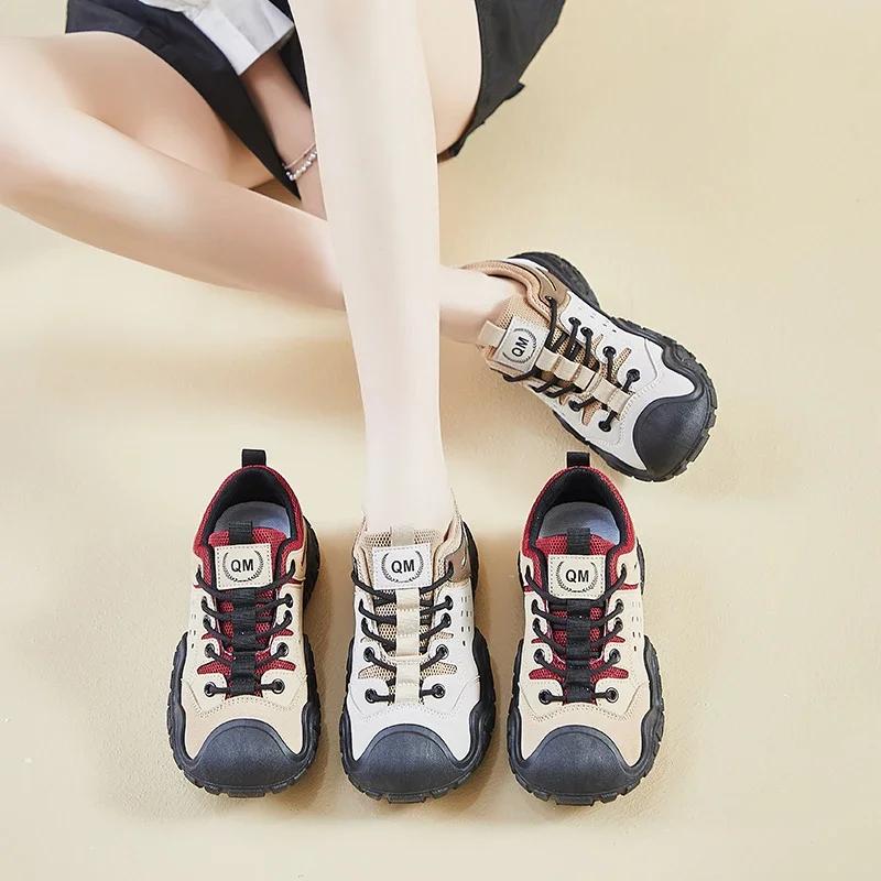 Распродажа модной женской обуви 2024 года, новые женские туфли на шнуровке из вулканизированной кожи, осенние разноцветные повседневные удобные туфли для ходьбы на открытом воздухе