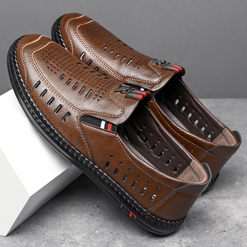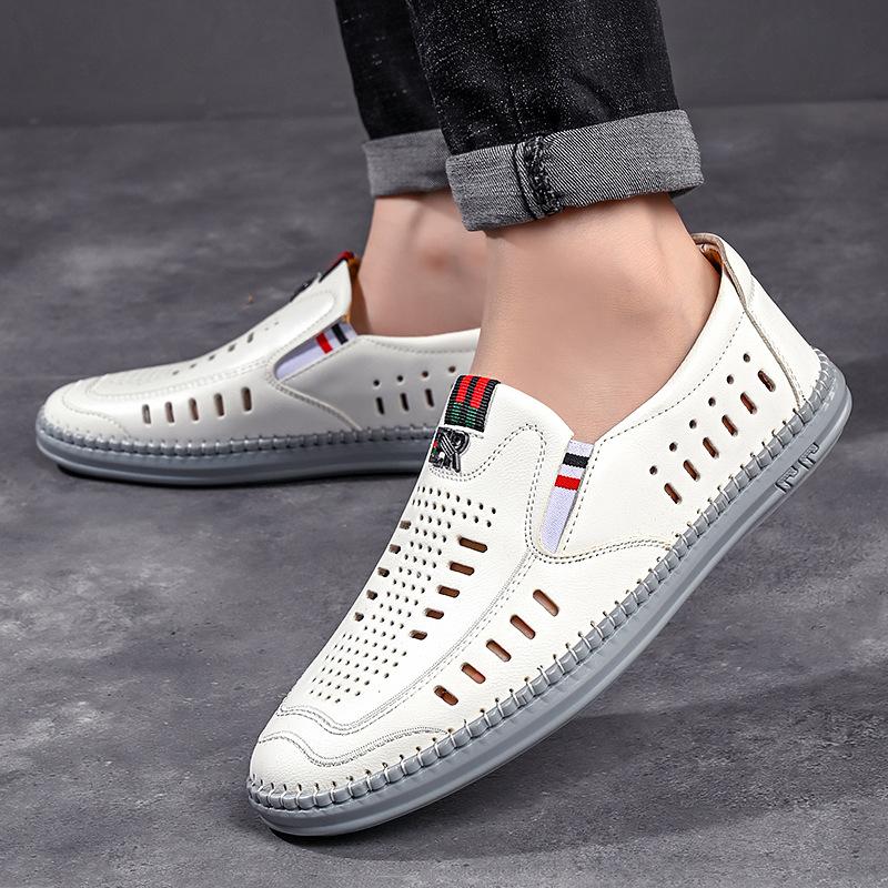 Мода 2024 Лето Мужская Мягкая Кожаная Повседневная Обувь Выдолбленные Дышащие Кожаные Сандалии Мужская Мода Повседневная Дизайнерская Обувь Мужская