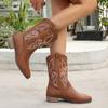 Мода 2024 Высококачественная женская обувь Женские сапоги без застежек Модные вышитые современные сапоги Женские зимние сапоги больших размеров до середины икры