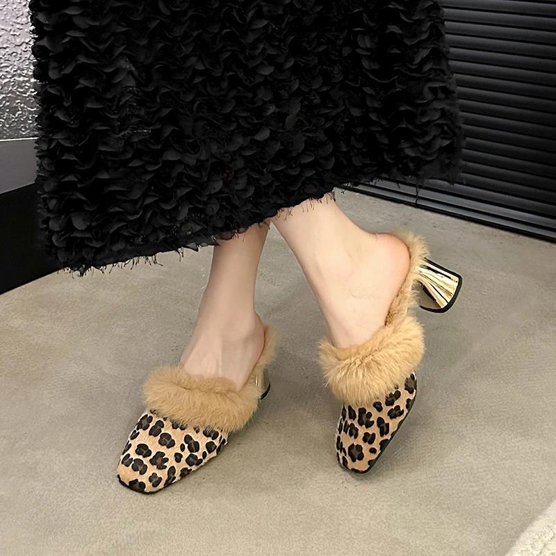 Модные женские тапочки, зимние новые высокие каблуки, квадратная голова, шерсть, леопард, хлопок, стильные, удобные, тапочки Add Home — купить товар онлайн с бесплатной доставкой по всему миру!
