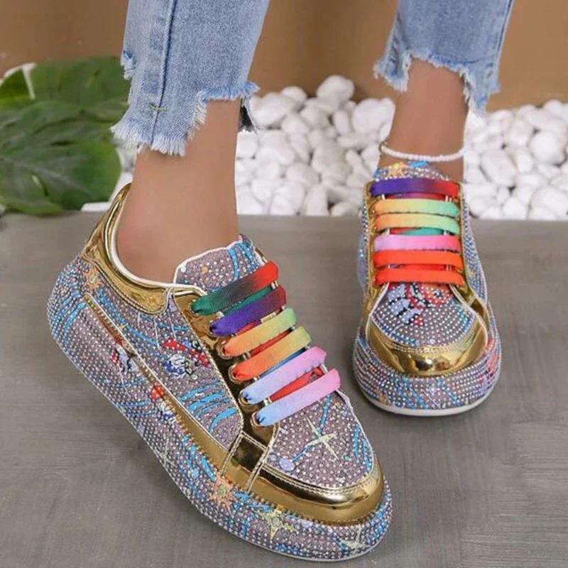 Модные красочные спортивные туфли Sky Star Water Diamond для женщин с толстой подошвой, удобные и дышащие спортивные туфли для сноуборда