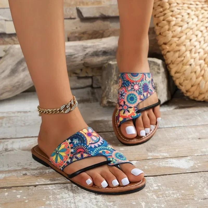Модные летние женские шлепанцы, повседневная пляжная обувь для женщин, сандалии с цветочным принтом на плоской подошве, ретро-слайды, женские тапочки