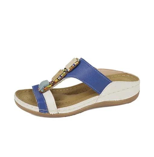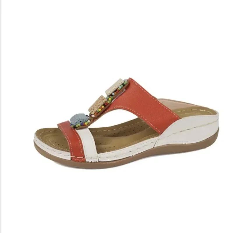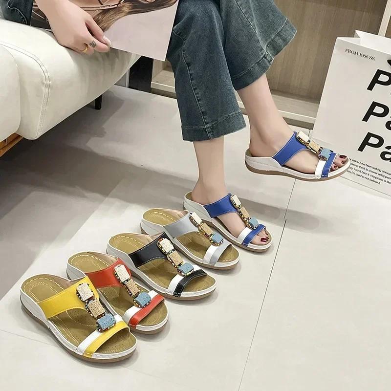 Мода 2024 Лето Повседневная обувь на платформе для женщин Открытый носок Женские тапочки на танкетке Ретро Поддержка свода стопы Ортопедические женские сандалии