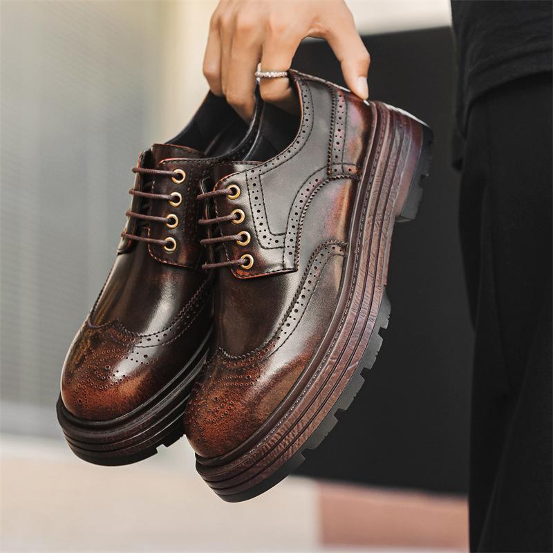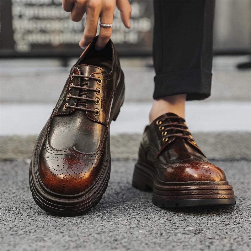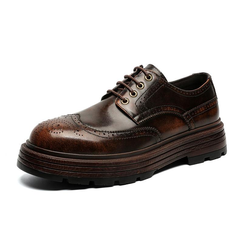 Модные мужские роскошные модные свадебные вечерние платья с резьбой броги коричневые оригинальные кожаные туфли дерби дизайнерская обувь на платформе