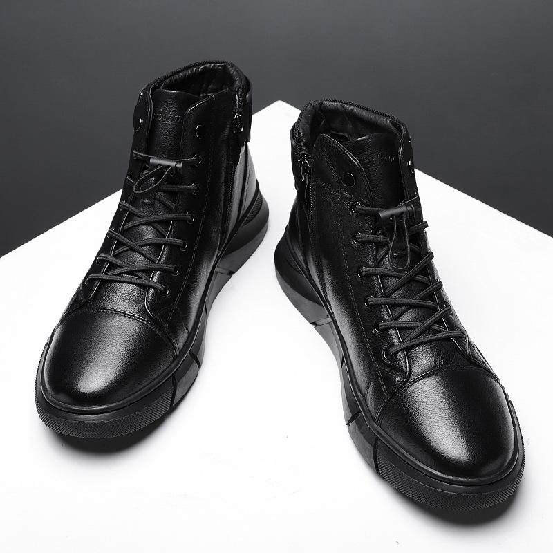 Модные мужские ботильоны, черные, из искусственной кожи, осень-зима, удобная повседневная обувь на платформе, высокие, 2024, модные мужские кожаные ботинки