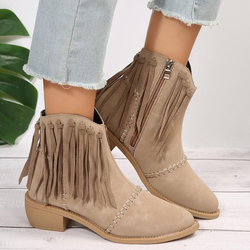 Модные осенние новые массивные одинарные ботинки женские остроносые замшевые с бахромой и боковой молнией удобные ботильоны на среднем каблуке — купить товар онлайн с бесплатной доставкой по всему миру!