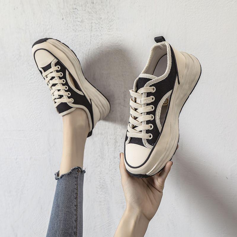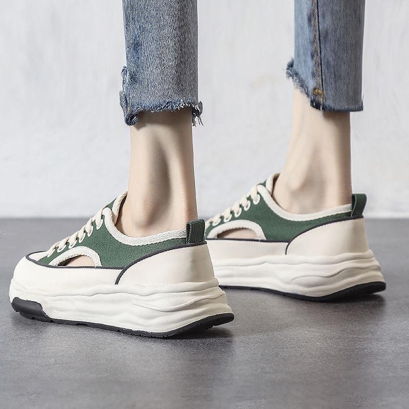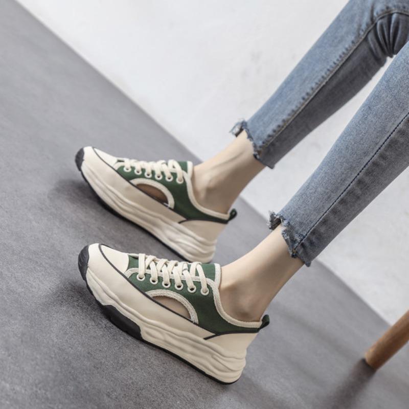 Модные зеленые парусиновые туфли на шнуровке с высокой платформой, женские туфли черного цвета, новое поступление 2024 года, модная обувь на осень 39, городская ходьба