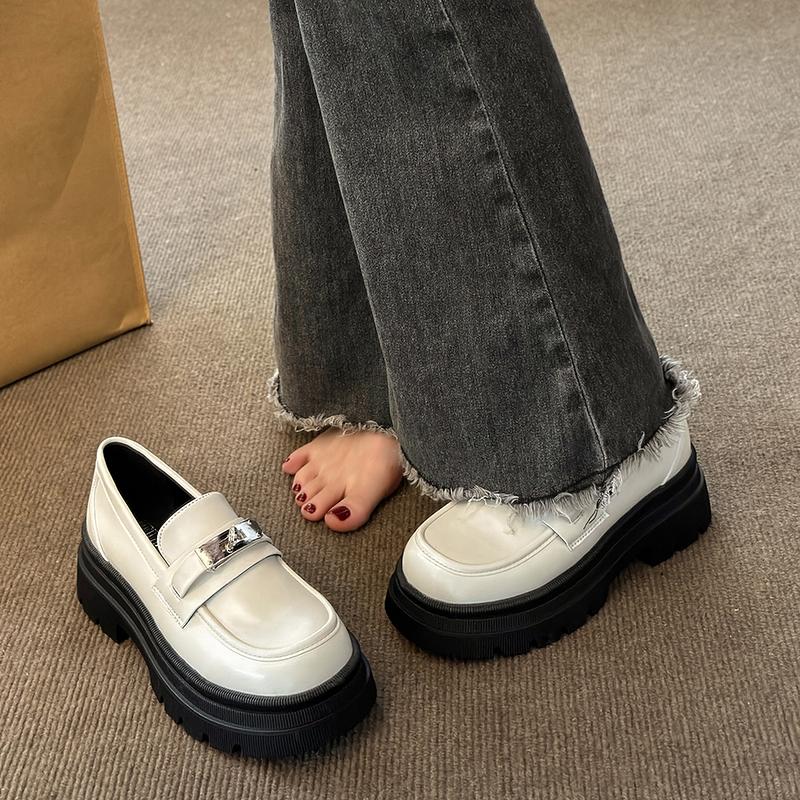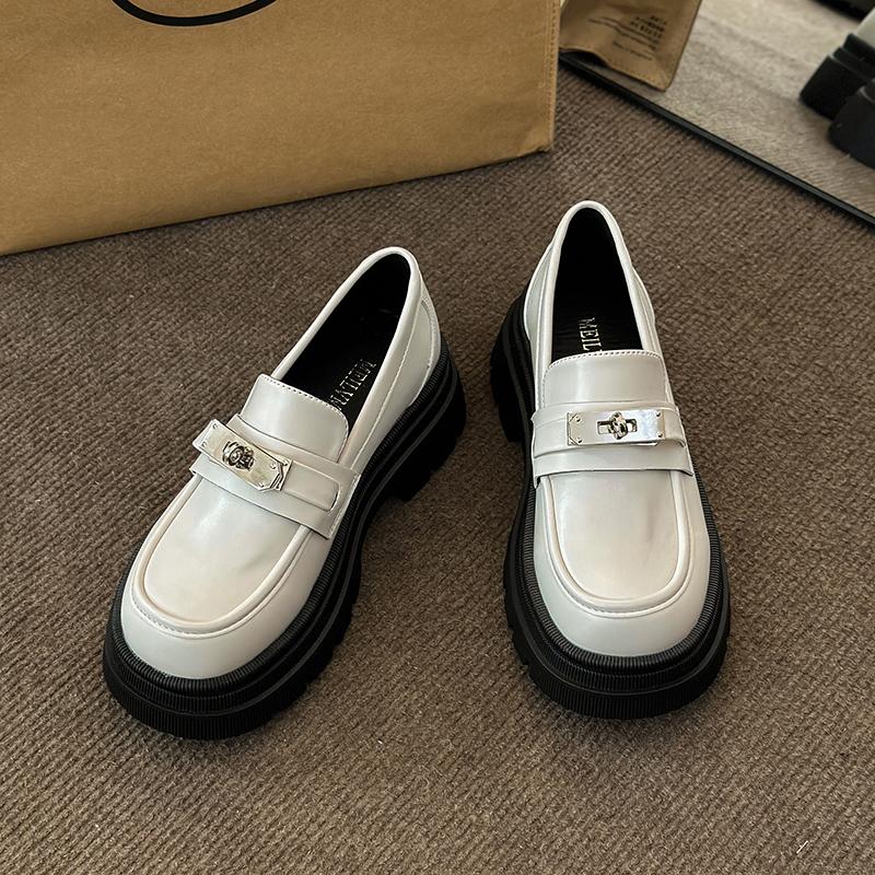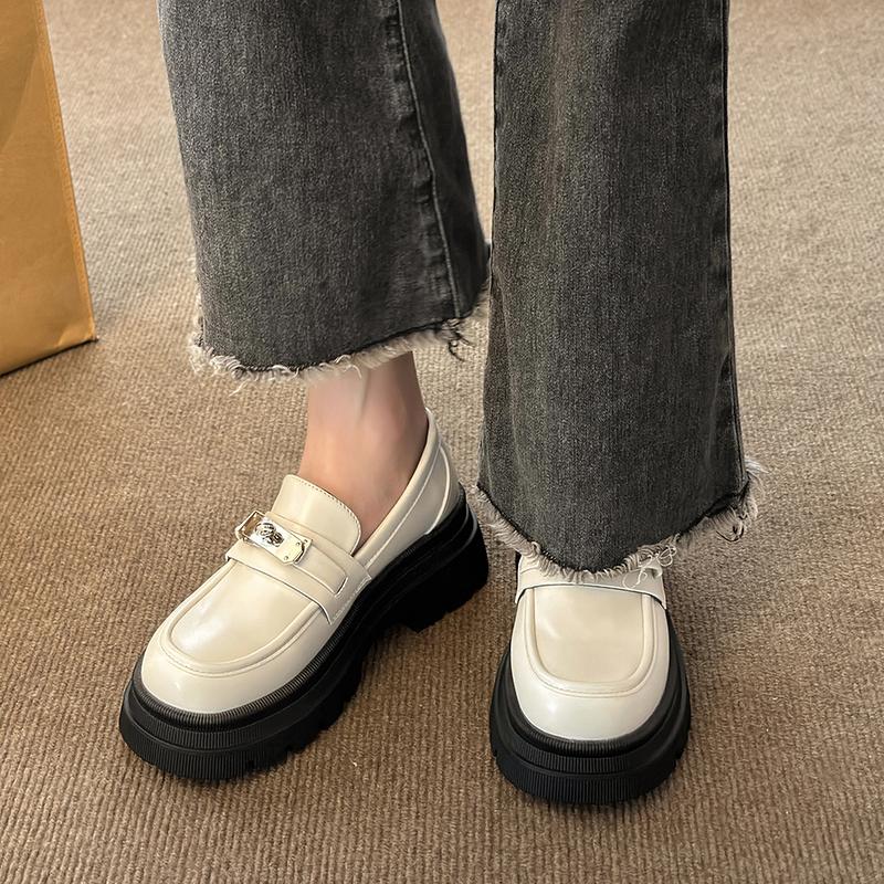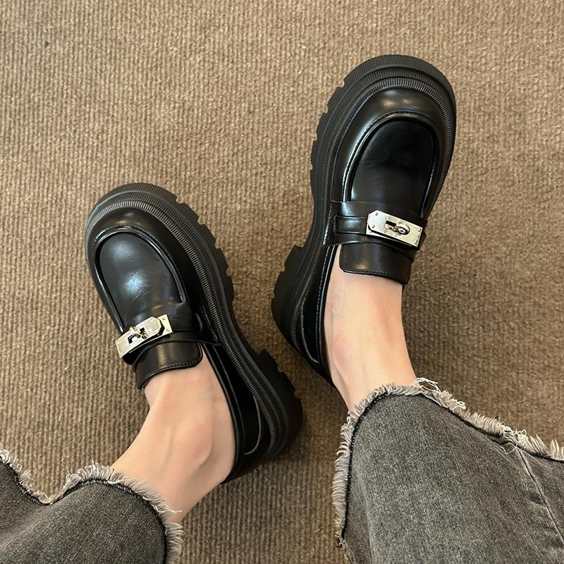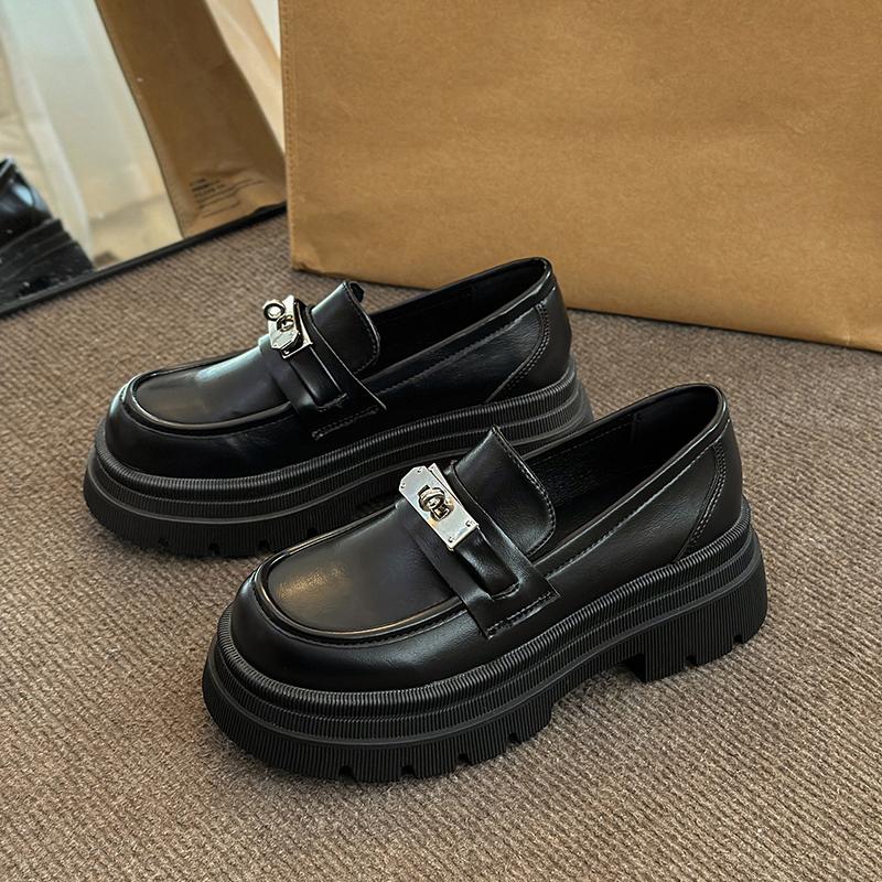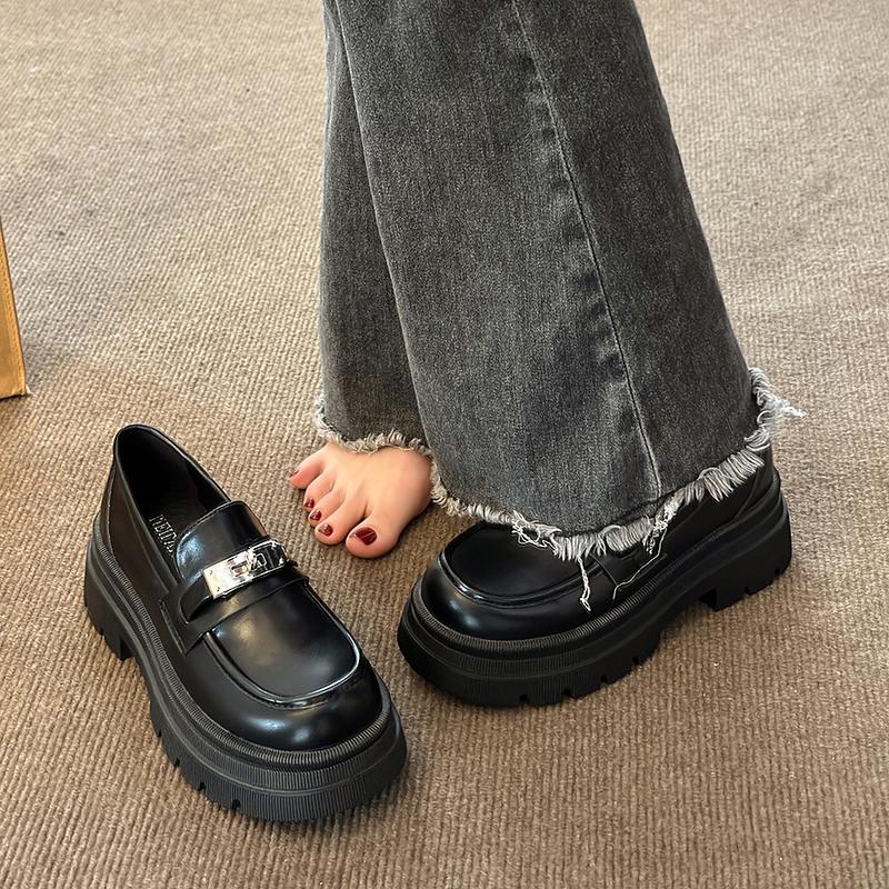 Модные массивные мокасины для женщин Кожаные туфли на платформе Повседневная обувь с круглым носком Женская обувь в британском стиле Черные туфли в стиле Лолита Винтаж