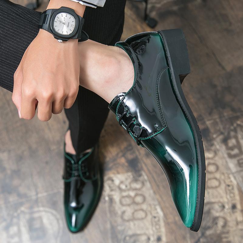 Модные мужские туфли-оксфорды с зеркальным лицом, роскошные дизайнерские туфли для торжественных случаев, лакированные туфли с острым носком, деловые платья на шнуровке, зеленые мокасины