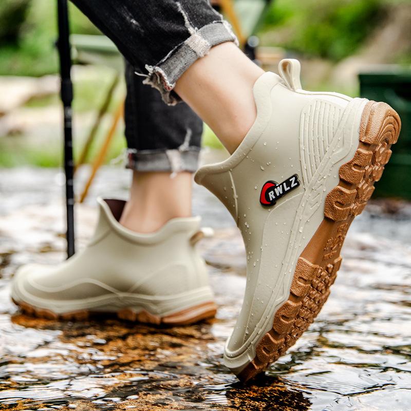 Модные новые мужские сапоги из ПВХ, трендовые мужские сапоги из ПВХ, обувь для рыбалки на платформе, теплые, водонепроницаемые, рабочие, мужские ботинки, однотонные