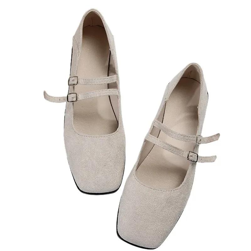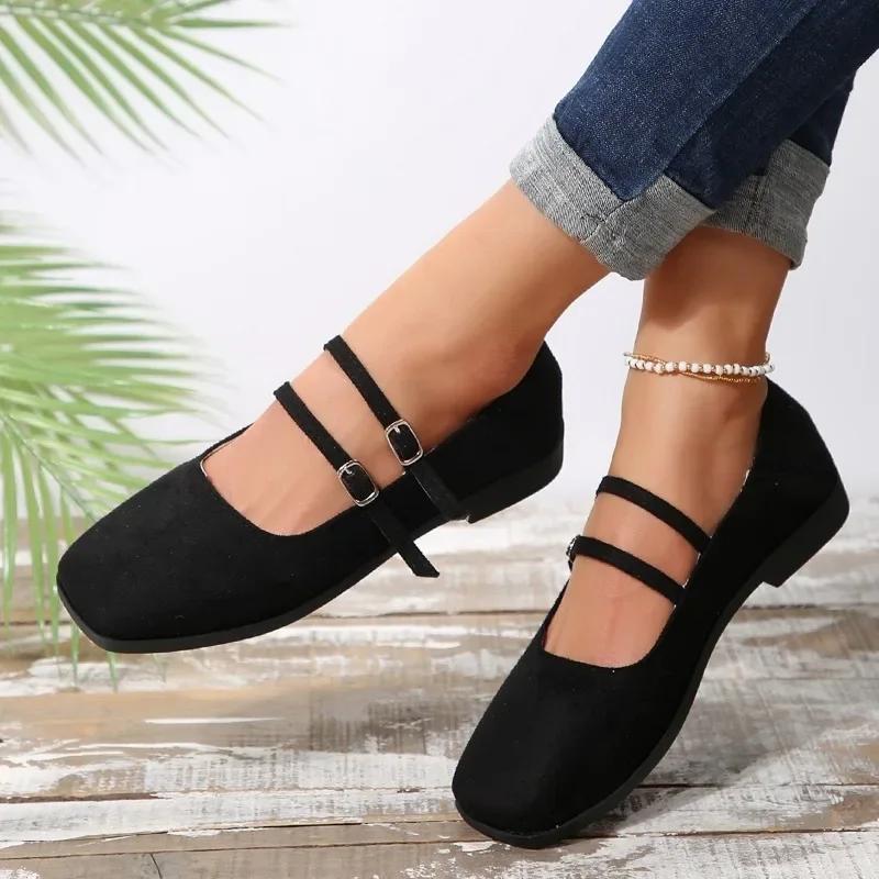Мода 2024 года, модная женская обувь с пряжкой на ремешке, женская обувь на плоской подошве, горячая распродажа, большие размеры, для офиса и карьеры, новые туфли на плоской подошве с квадратным носком и низким каблуком, Zapatos