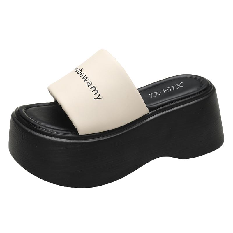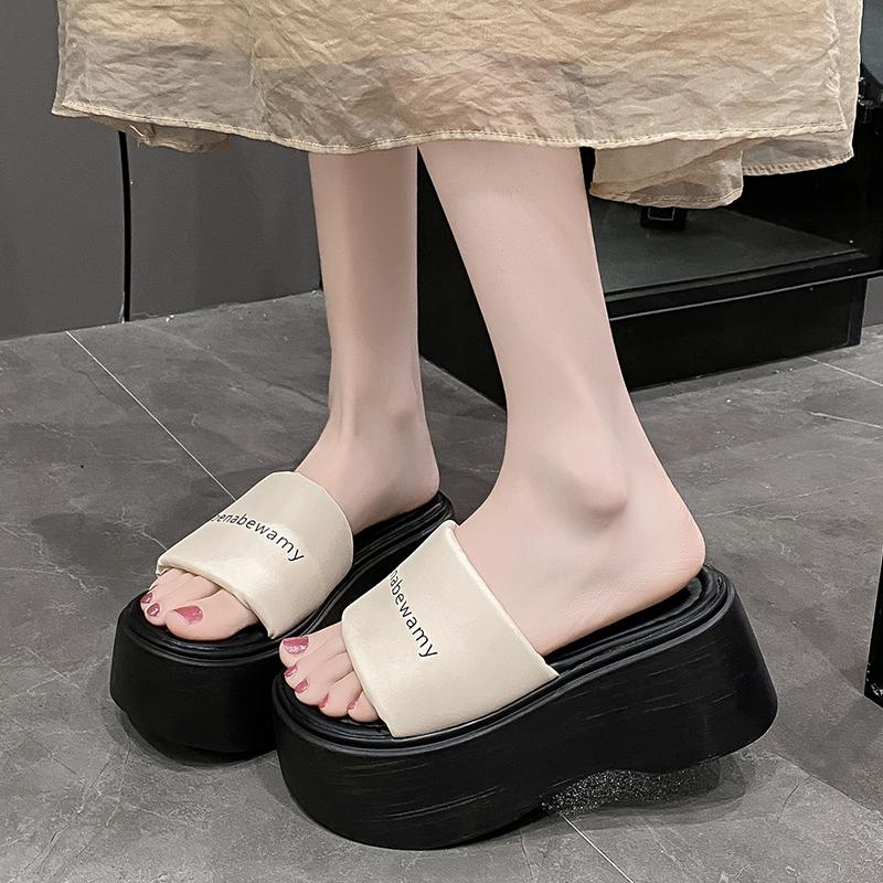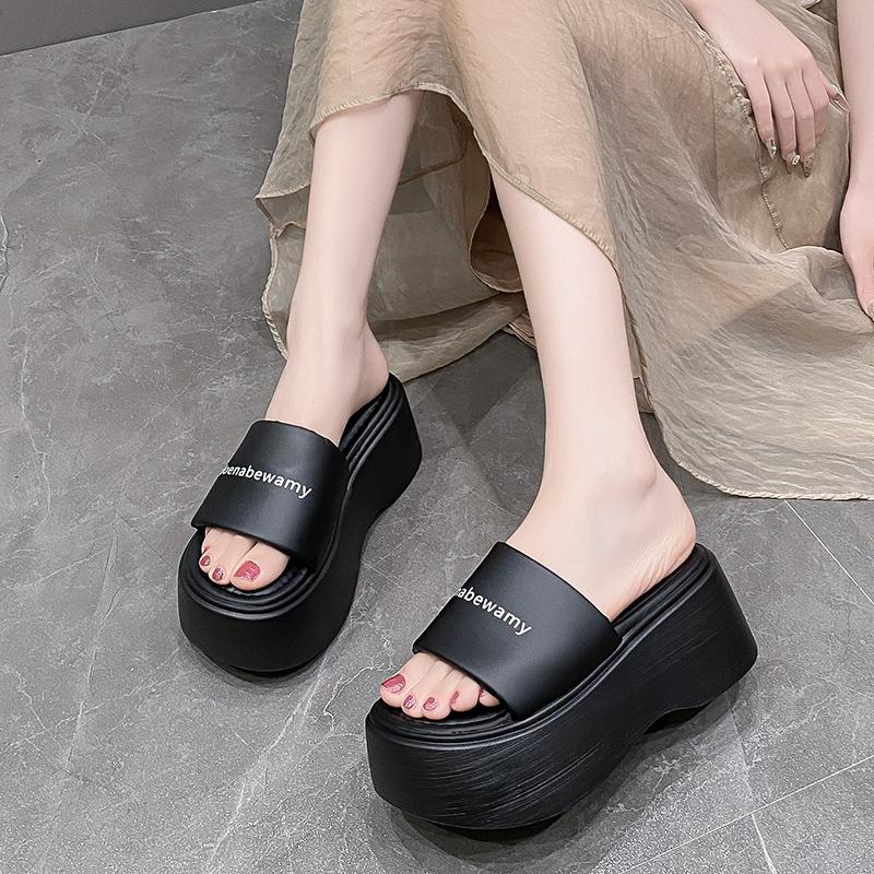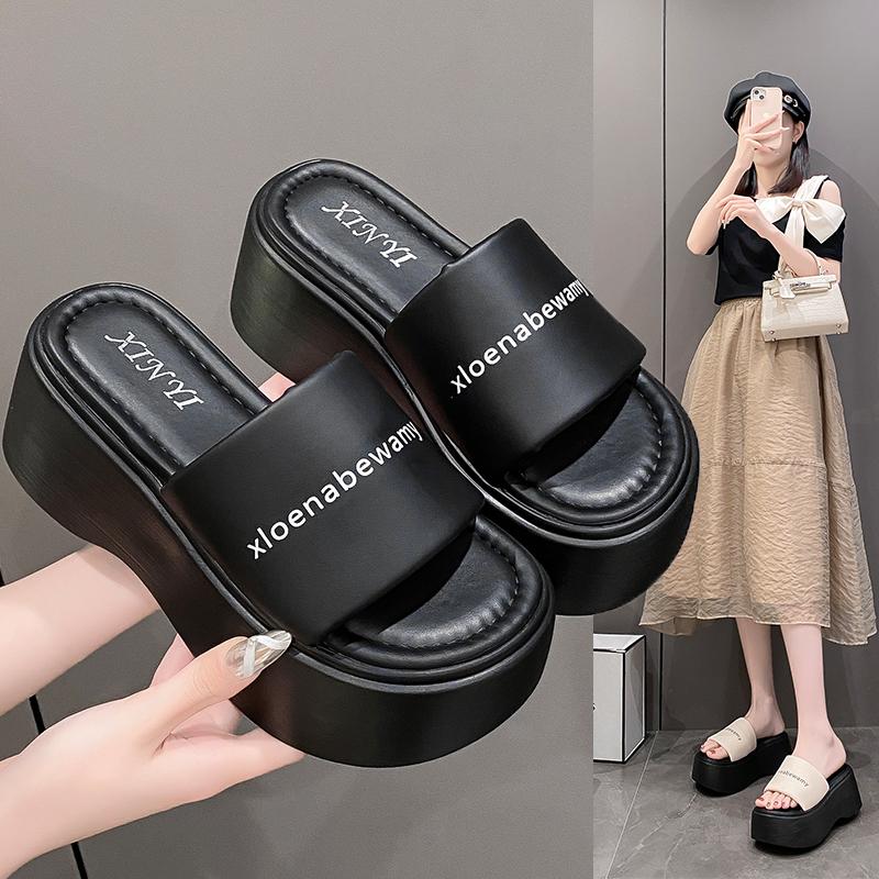 Модные новые женские тапочки на платформе, летние дышащие шлепанцы на высоком каблуке 8 см, женские пляжные шлепанцы на шнуровке, массивные сандалии Mujer