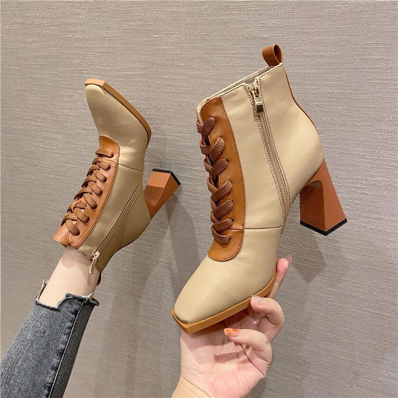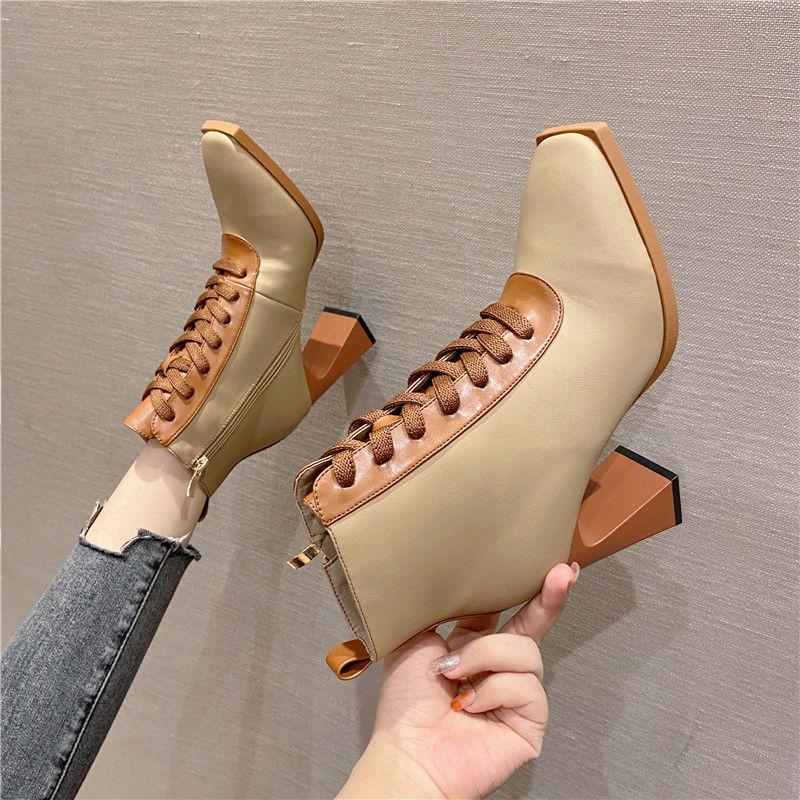 Модные женские ботильоны, сочетающиеся по цвету со шнурками, ботильоны на каблуке, очень высокие каблуки, женские короткие туфли, на шнуровке, шикарные и элегантные, распродажа