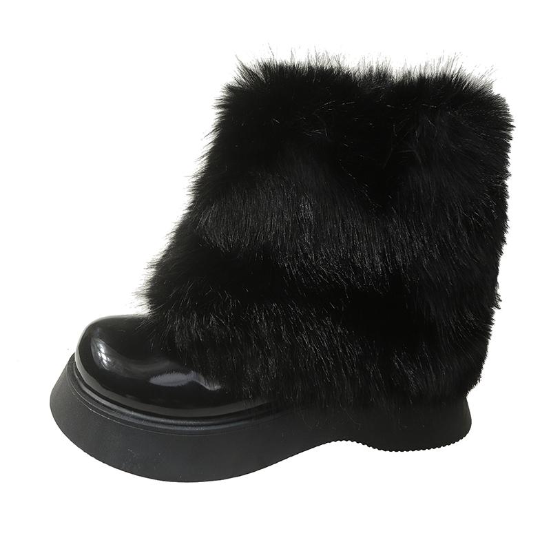 Модные женские теплые плюшевые зимние сапоги 5 см, нескользящие зимние сапоги, замшевые кожаные толстые кроссовки, толстые меховые высокие ботильоны на платформе