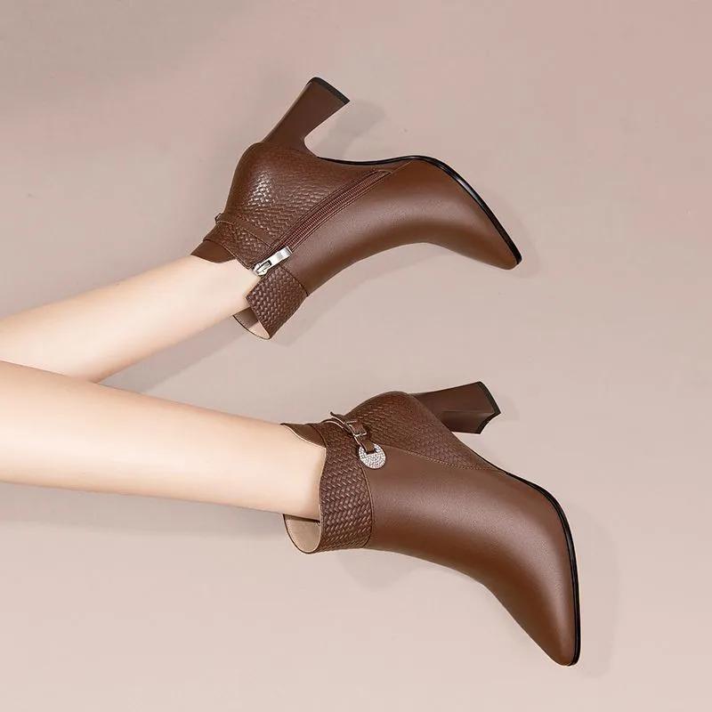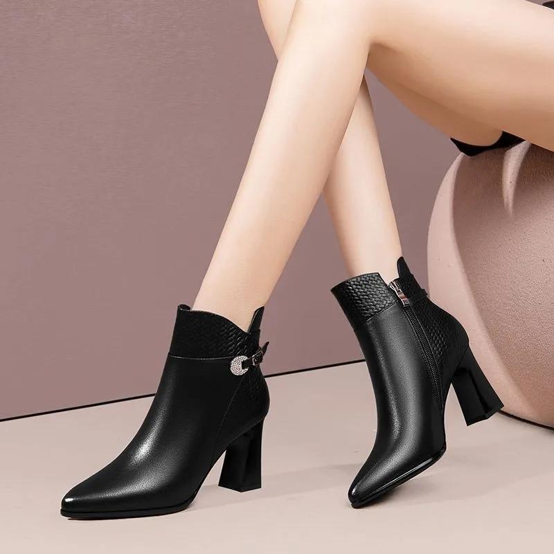Мода 2024 года, осень, новые толстые каблуки с острым носком, женские туфли на высоком каблуке, модные женские ботинки с боковой молнией, модные ботинки