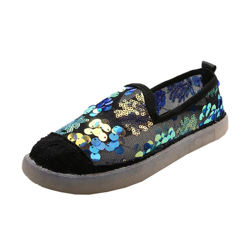 Мода 2024 Лето Новые Корейский Стиль Плоская Подошва Женская Обувь Модные Пайетки Сетчатые Воздухопроницаемые Повседневные Туфли Для Женщин Zapatos De Mujer