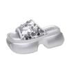 Модные синтетические босоножки на танкетке высотой 8 см, шикарные босоножки на танкетке, женские пляжные туфли с открытым носком, летние тапочки, модная обувь