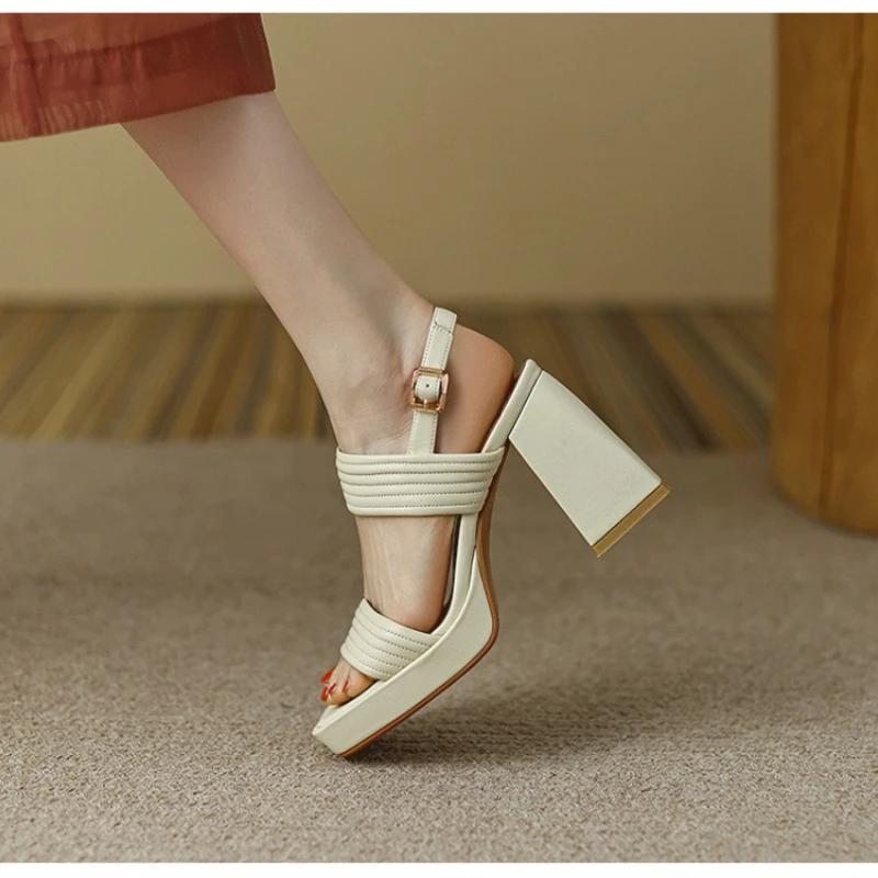 Модные женские босоножки с пряжкой на ремешке 2024 года, удобные летние римские сандалии на высоком каблуке, женские туфли с открытым носком и квадратным каблуком