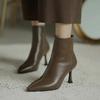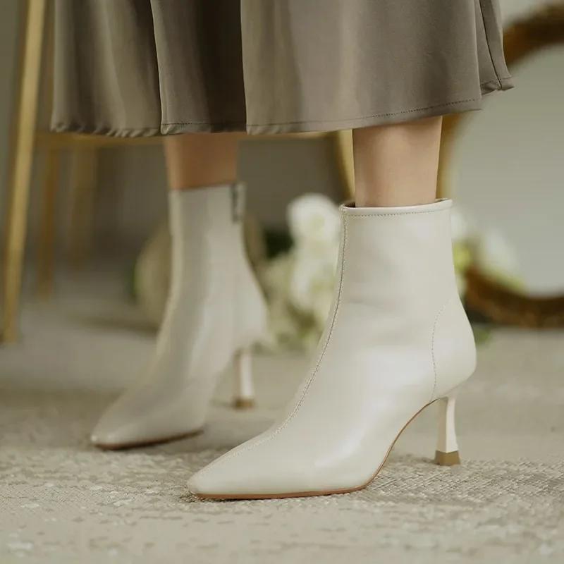 Мода 2024 года, модная женская обувь, женские ботильоны, элегантные современные ботинки, женские, сшитые, с острым носком, на высоком тонком каблуке, с боковой молнией, женские