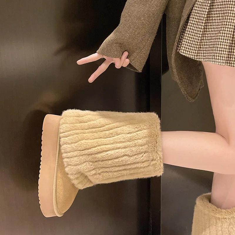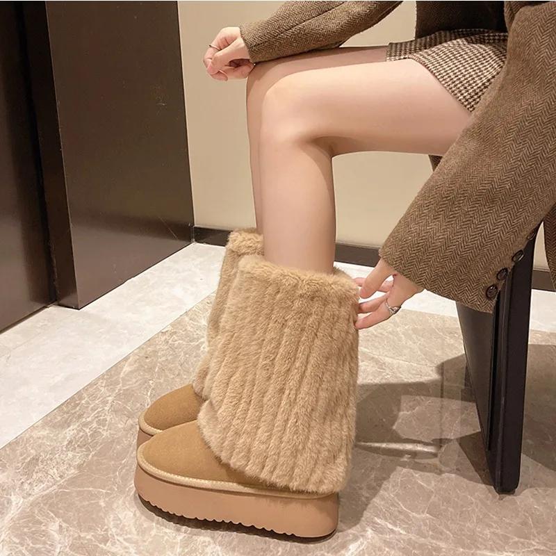 Модные женские зимние новые стильные модные меховые леггинсы дизайнерские толстые удобные зимние ботинки уличные теплые без застежек модные ботинки