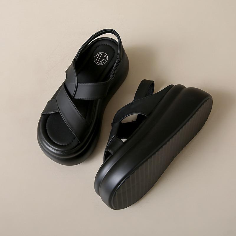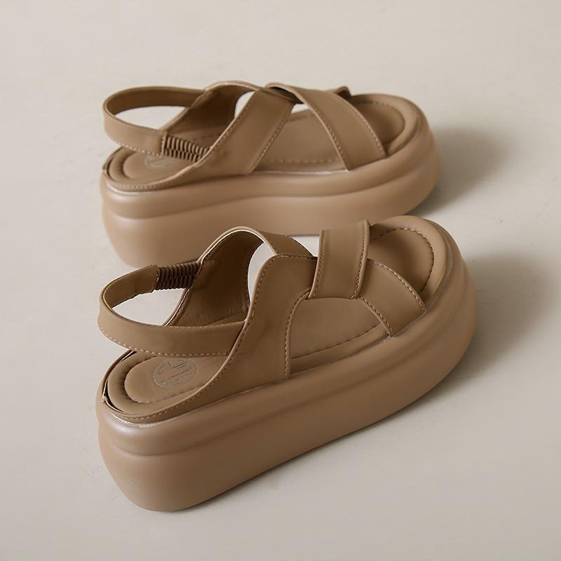 Модные новые летние женские сандалии на толстой подошве из кожи, кроссовки на высокой платформе, дышащие повседневные тапочки, женские кроссовки на каблуке 7,5 см