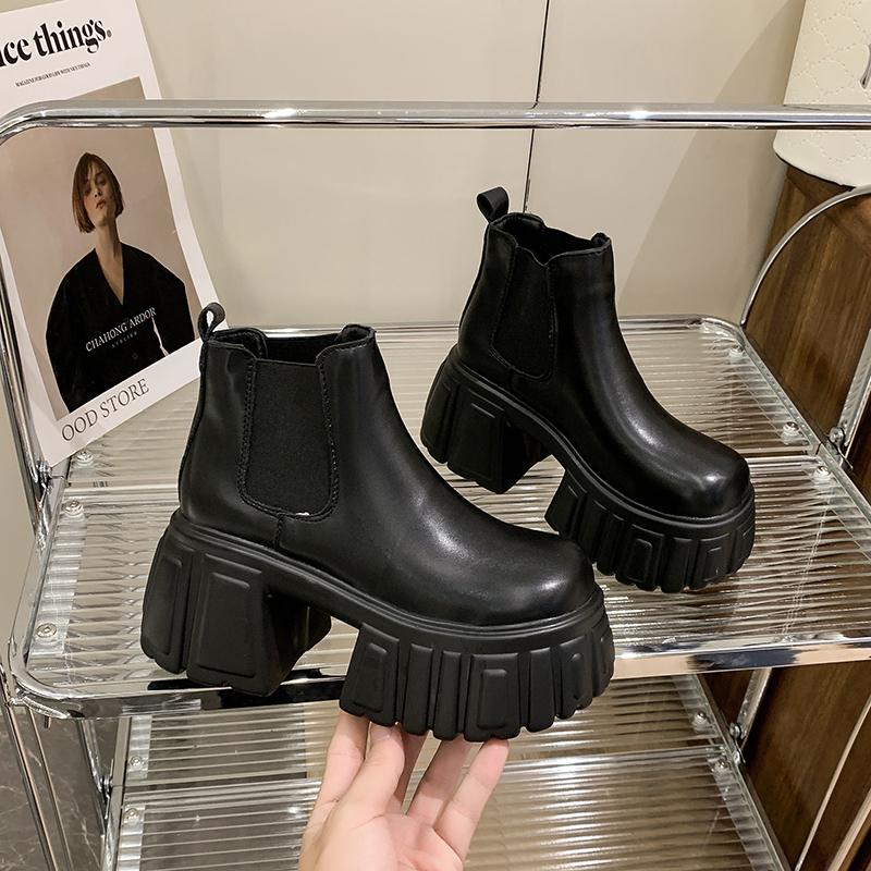 Модные зимние женские кожаные ботинки на толстой подошве с каблуком 9 см, осенние ботинки 2025 года на высокой платформе, женские нескользящие мотоциклетные ботинки с толстой подошвой — купить товар онлайн с бесплатной доставкой по всему миру!