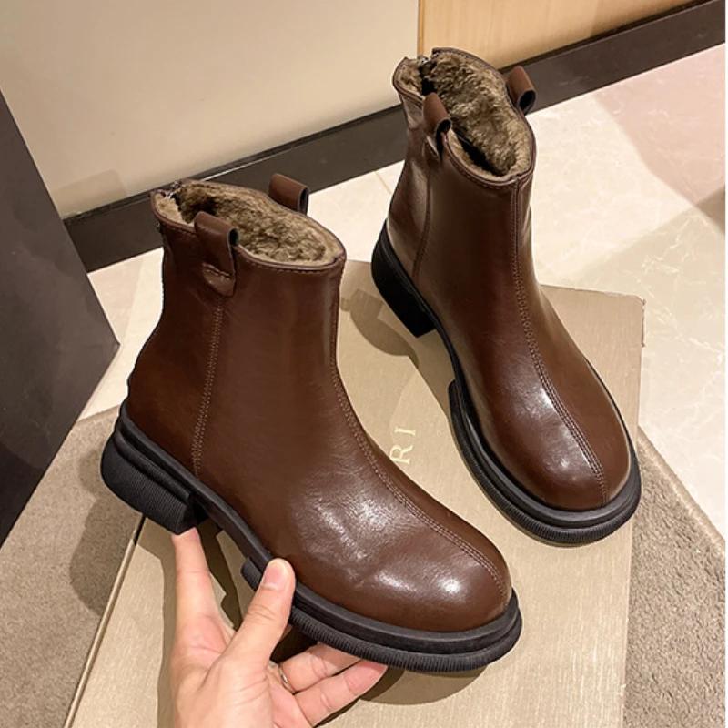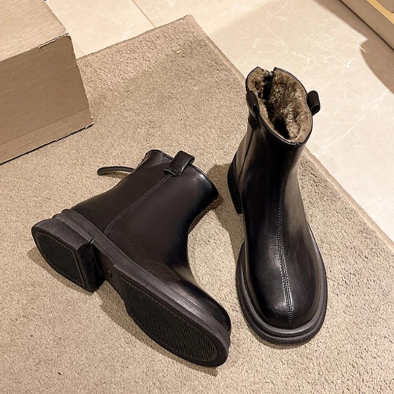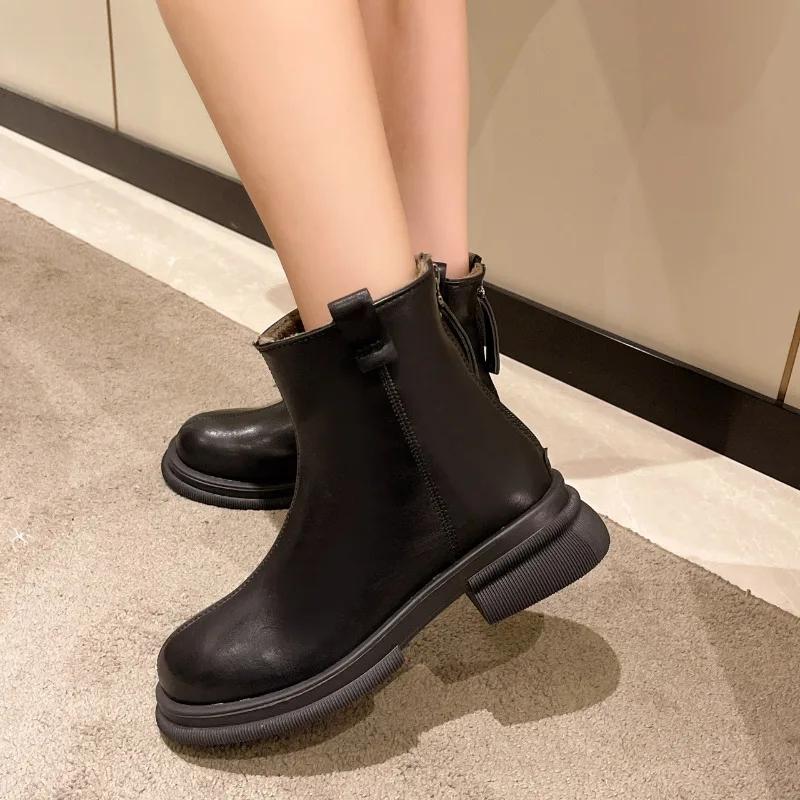 Модные европейские и американские модные женские ботинки 2024 года, осень и зима, новые утягивающие короткие ботинки с застежкой-молнией сзади и утеплителем на толстой подошве