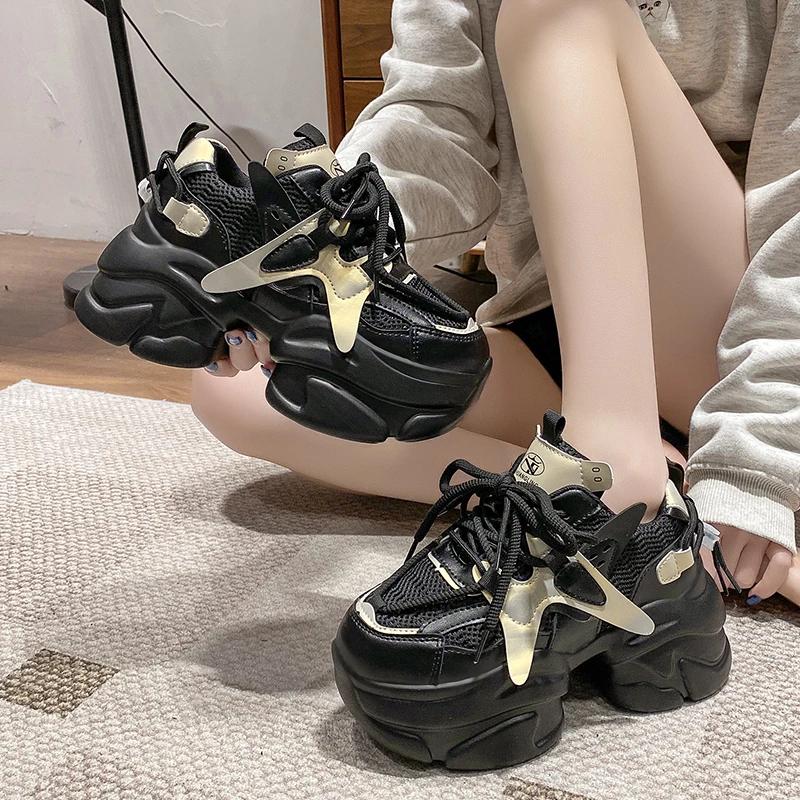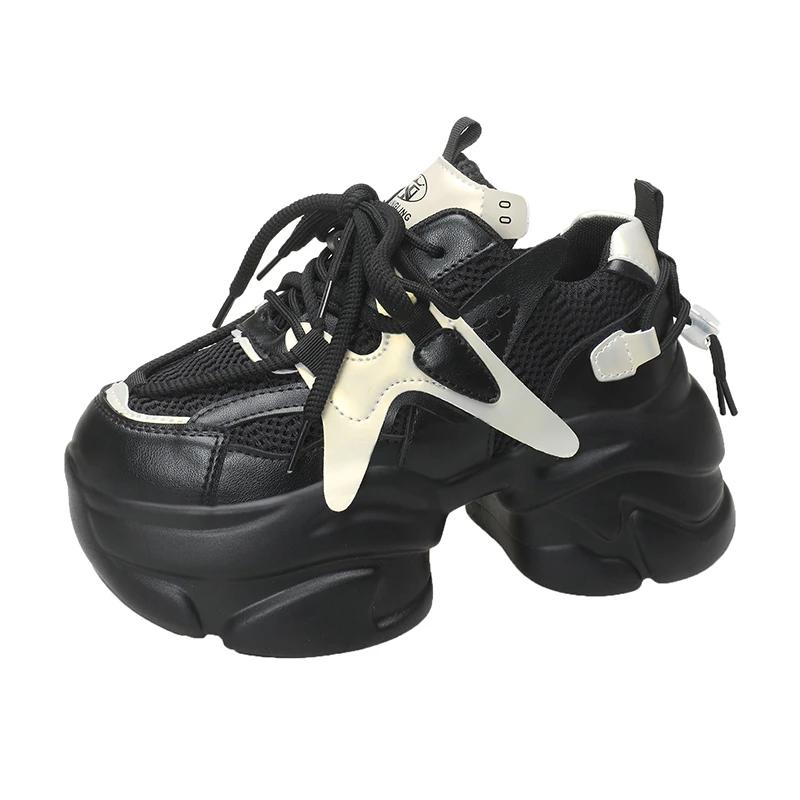 Модные 10 см осенне-весенние массивные кроссовки женские на шнуровке нескользящие спортивные туфли на платформе толстые туфли женские повседневные кроссовки на каблуках