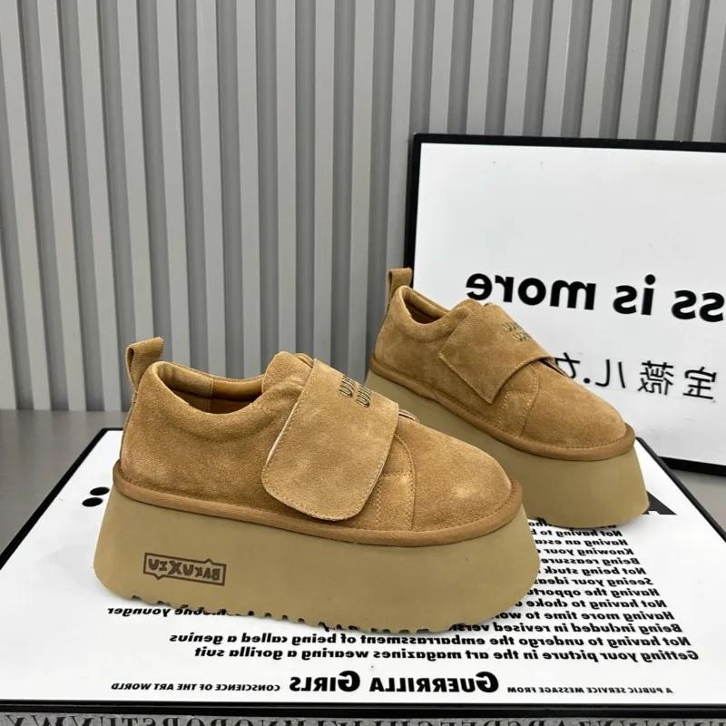 Модные замшевые женские туфли-лоферы на платформе, повседневные кроссовки на высоком каблуке, осенний тренд, бег, бренд, спорт, зима 2024, хлопок, Zapatillas Mujer