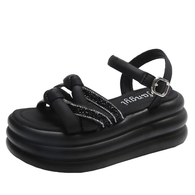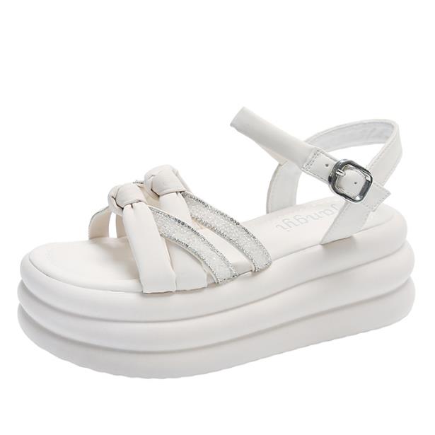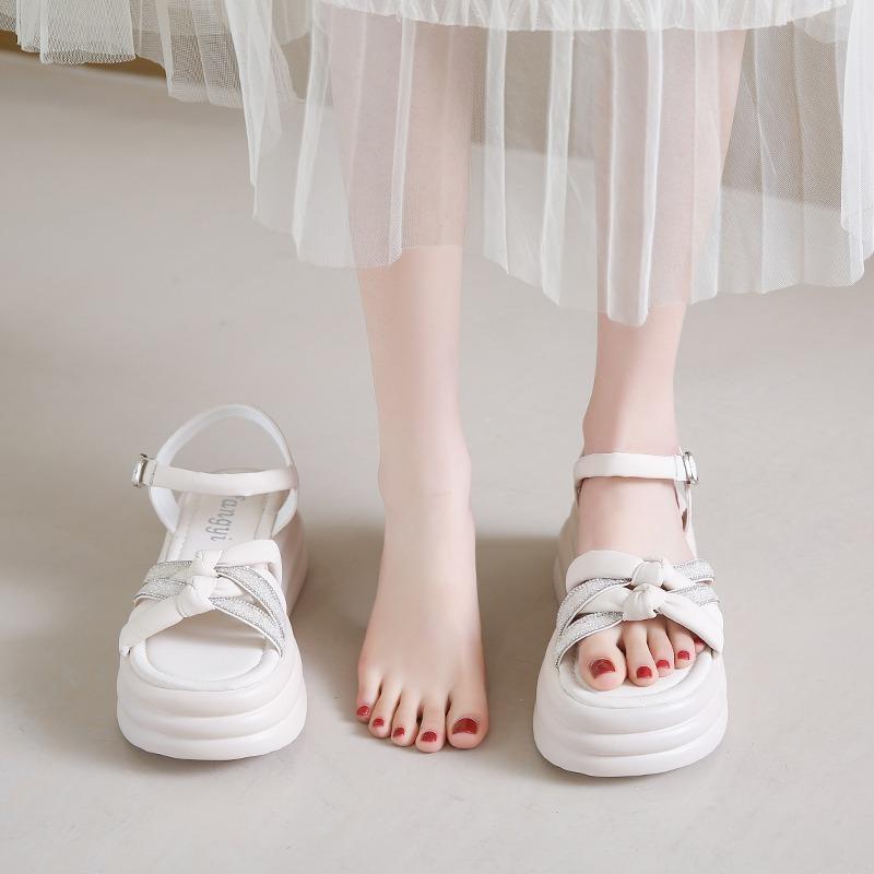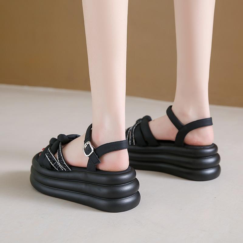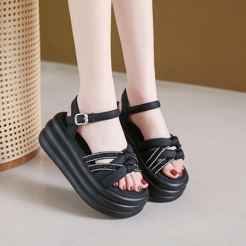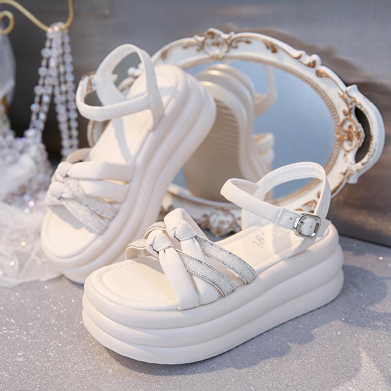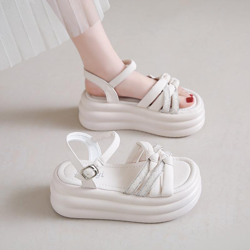 Модные дышащие повседневные тапочки высотой 7 см со стразами, летние блестящие тапочки, роскошные босоножки на танкетке и платформе для отдыха, элегантная женская обувь