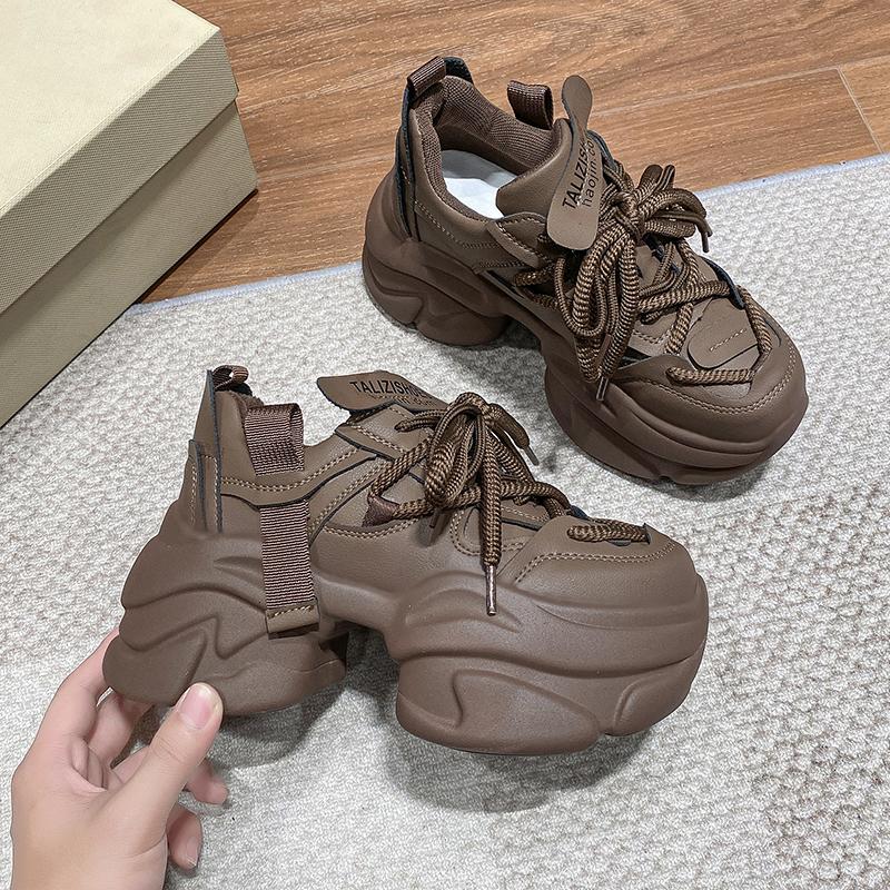 Модные осенние кроссовки на толстом каблуке 8 см для женщин 2024 года, новые дышащие сетчатые спортивные туфли на платформе для женщин, толстая подошва, папины туфли для женщин