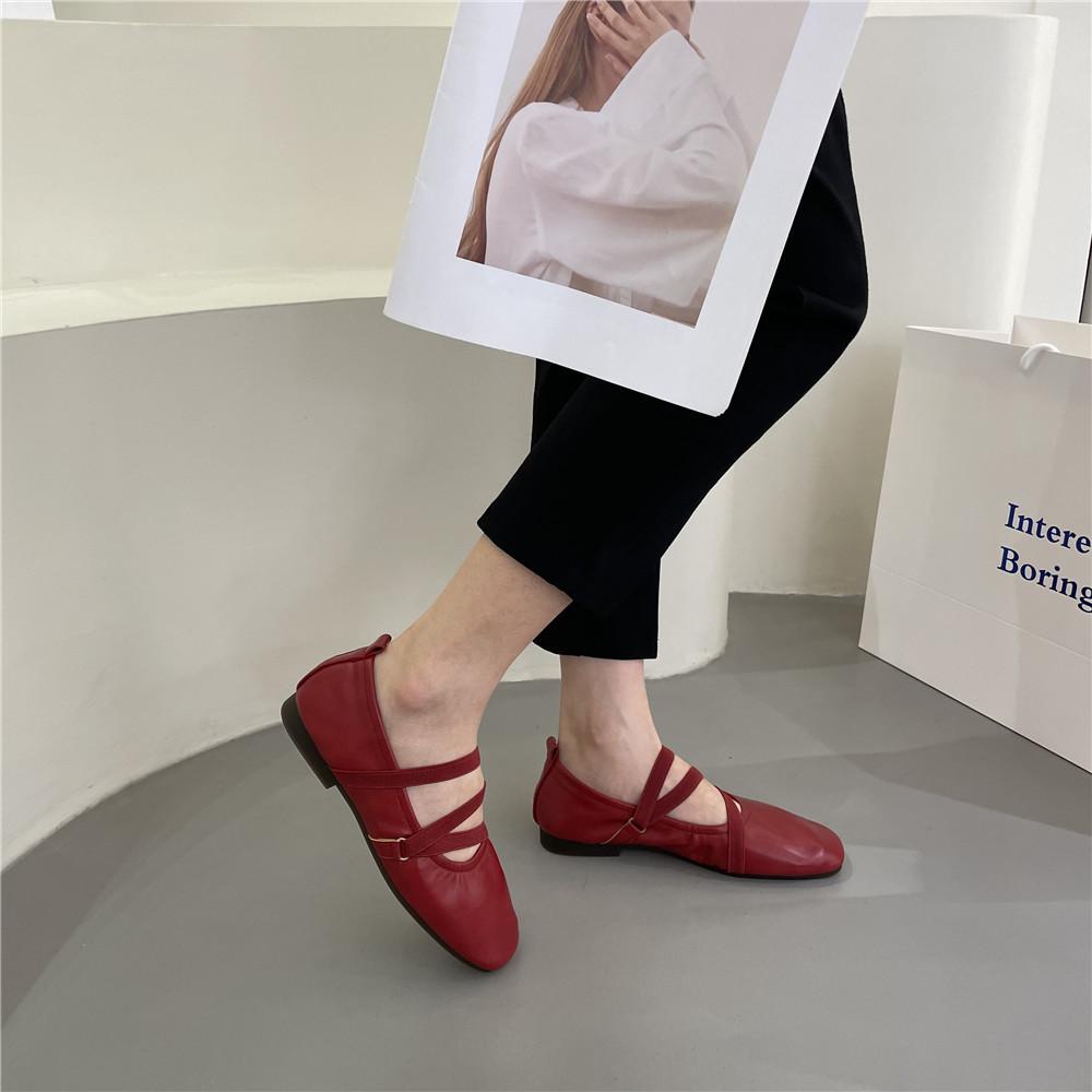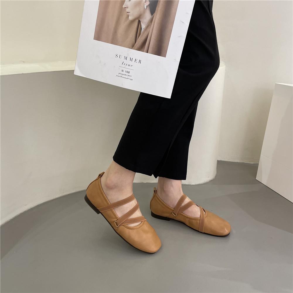 Мода 2024 года, новые балетки на плоской подошве, женские удобные кожаные туфли, женские роскошные туфли Мэри Джейн с квадратным носком и тонким ремешком, повседневная обувь в стиле ретро