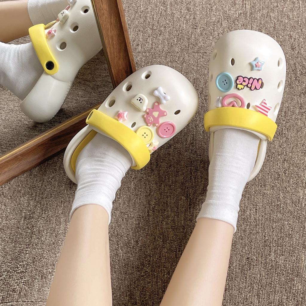 Модные новые сандалии тапочки милые мультяшные сабо женские мюли летние пляжные сандалии пещера отверстие женская садовая обувь для студентов девочек — купить товар онлайн с бесплатной доставкой по всему миру!