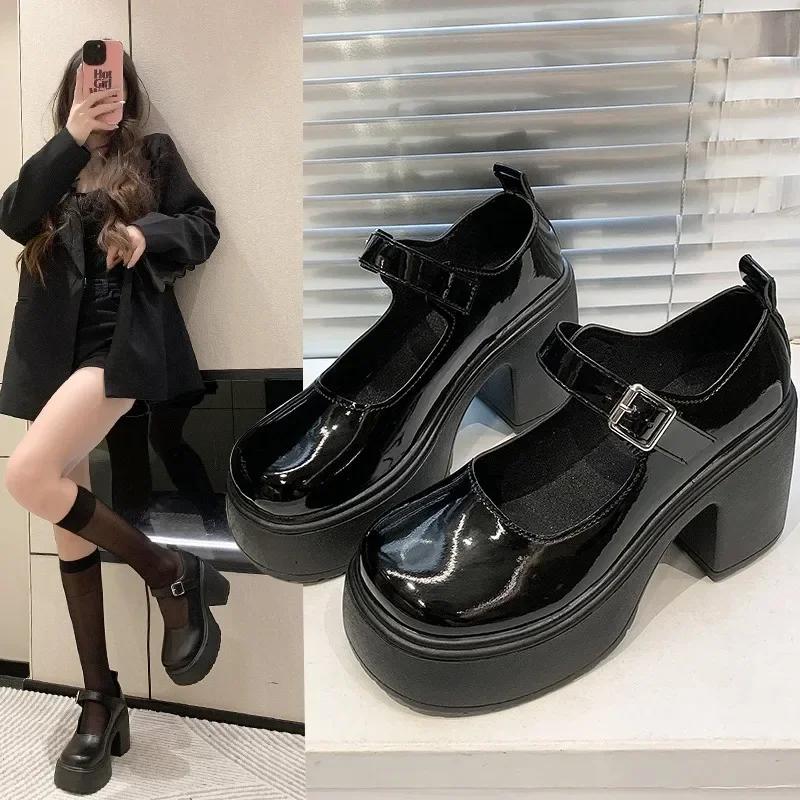 Мода 2024 года, новые женские туфли на высоком каблуке, платформа, круглый носок, пряжка, ремешок, Мэри Джейн, женские туфли на каблуке в готическом стиле для вечеринок, банкета, отдыха
