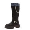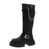 Модные женские ботинки Chelsea в стиле пэчворк с цепочкой и цепочкой на платформе, высокие дизайнерские туфли на среднем каблуке 2024 года, новый тренд зимы в готическом стиле, Zapatos Mujer