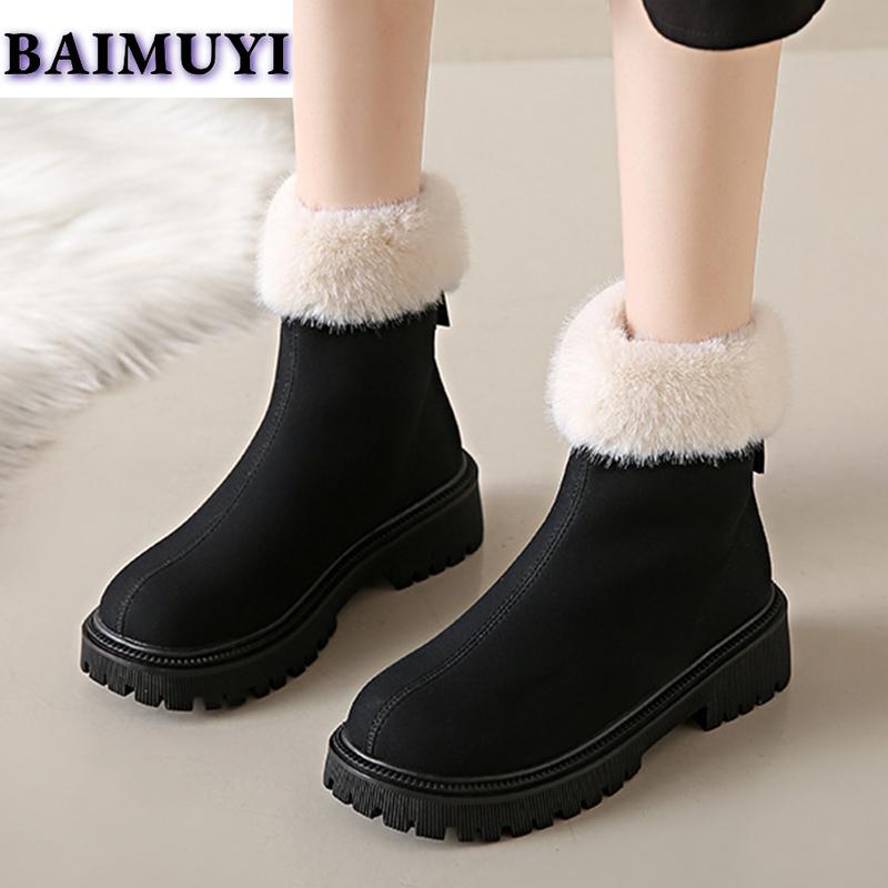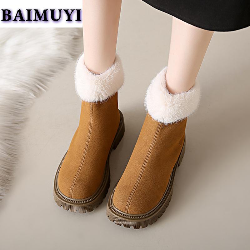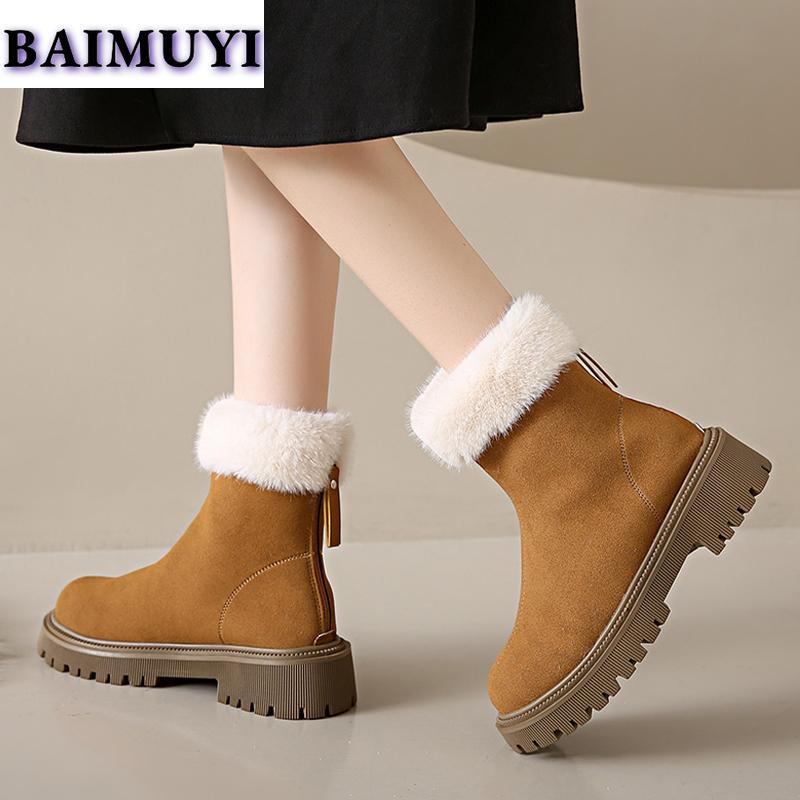 Модные женские ботильоны для снега, меховые балетки на платформе, тренд 2025, замшевые теплые короткие плюшевые челси, зимние новые на молнии, женские ботинки