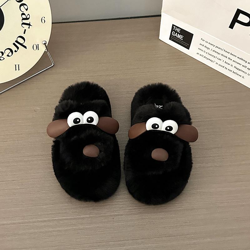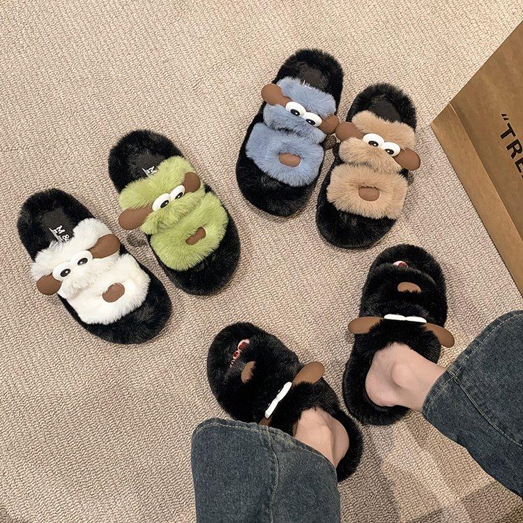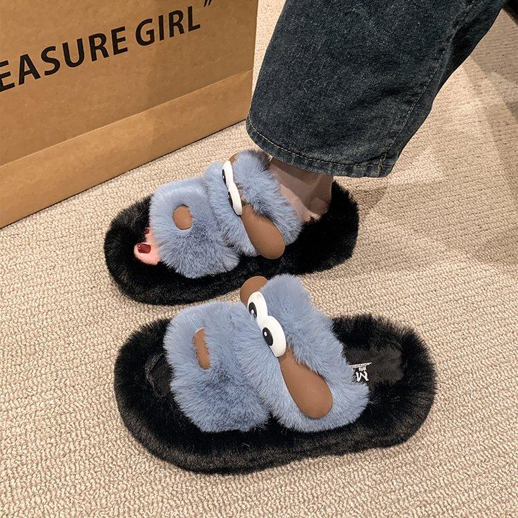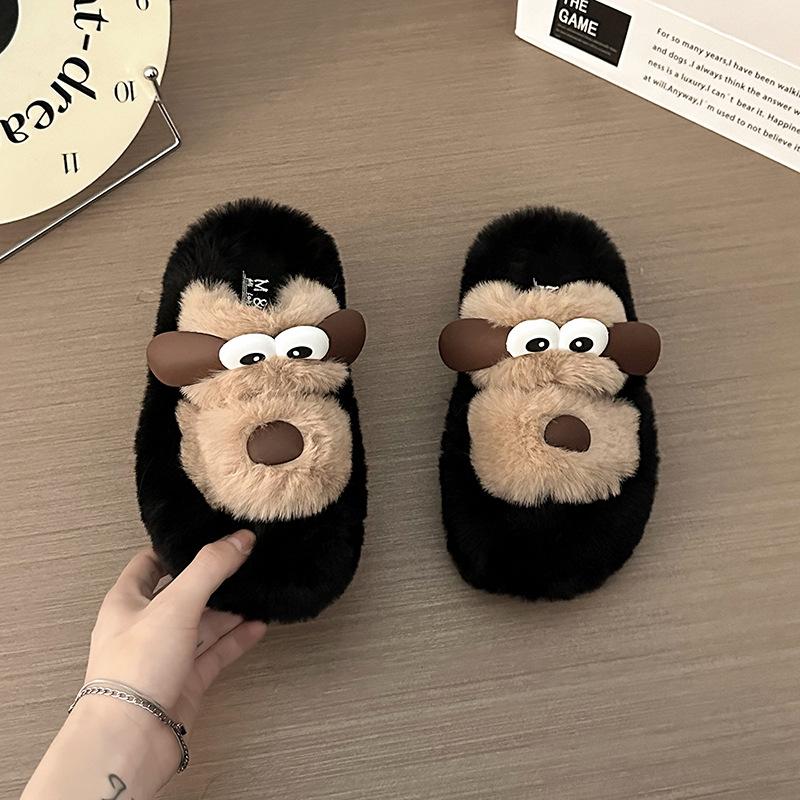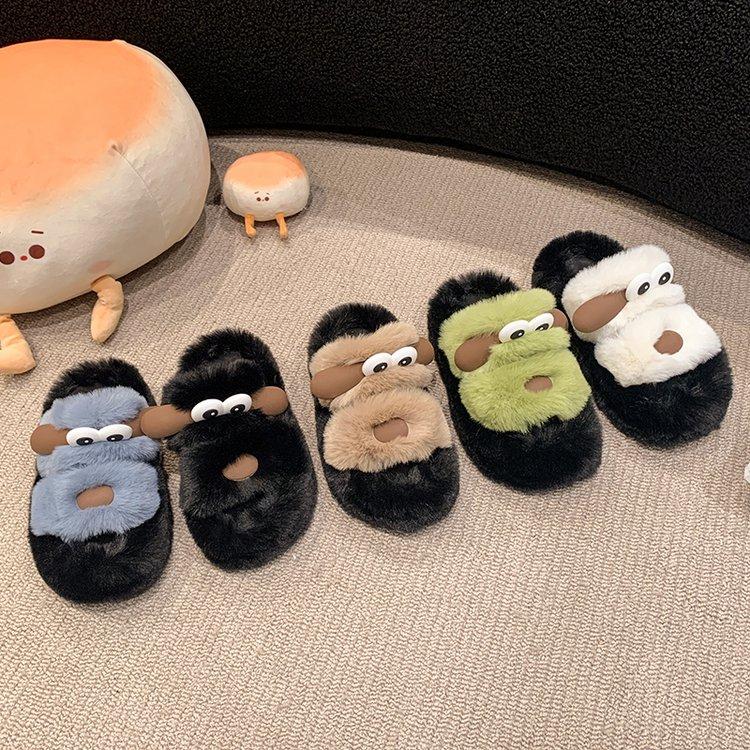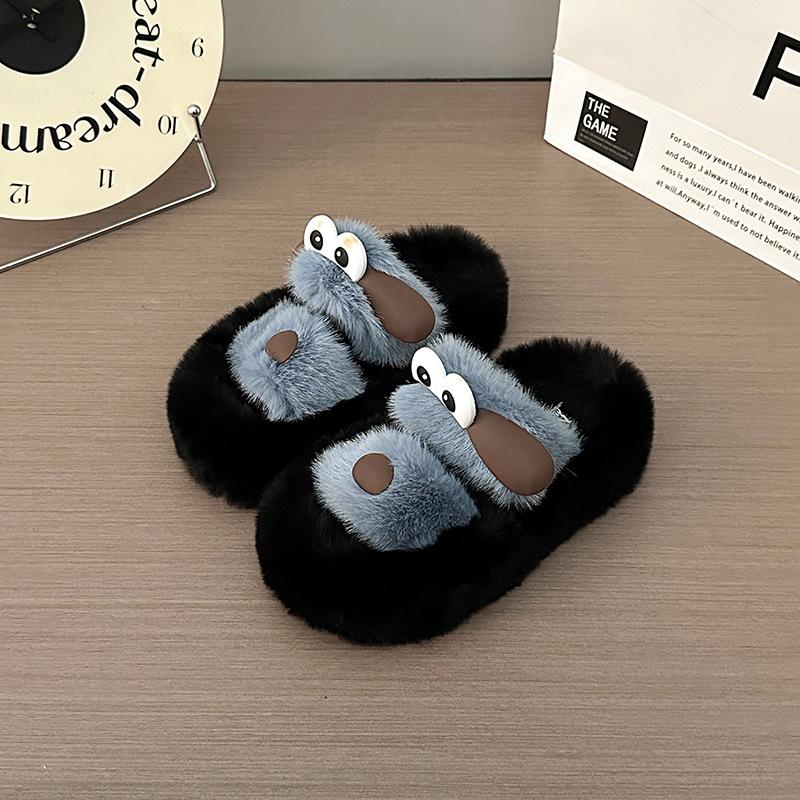 Модные женские домашние тапочки Милые мультяшные Теплые плюшевые Женские Пушистые туфли Уютные с открытым носком Хлопковые шлепанцы Уличные Нескользящие тапочки на платформе