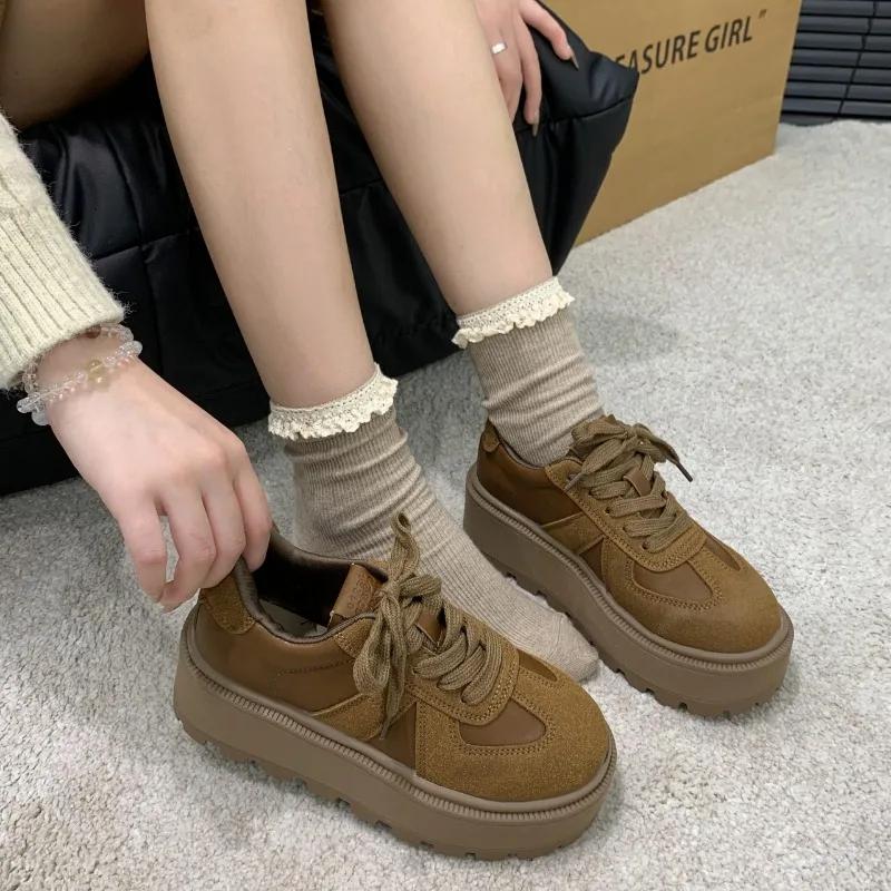 Модные женские повседневные кроссовки, ботинки, женская обувь на шнуровке, платформа, увеличивающая рост, современные ботинки на толстой подошве, ботильоны цвета хаки — купить товар онлайн с бесплатной доставкой по всему миру!