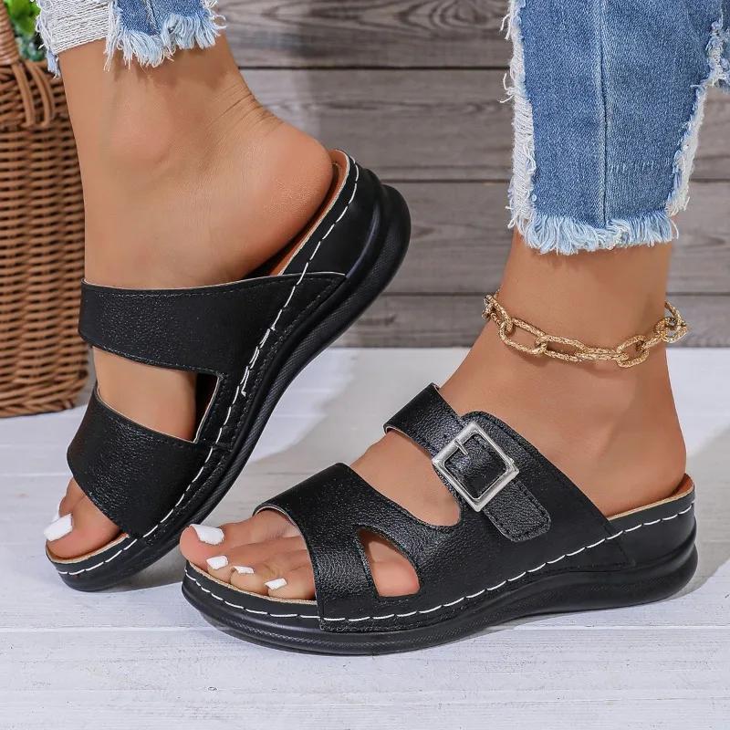 Мода 2024 Горячая Распродажа Обувь Женская С Открытым Носком Женские Шлепанцы Лето Римская Пряжка Однотонные Уличные Повседневные Пляжные На Платформе Большие Размеры Шлепанцы