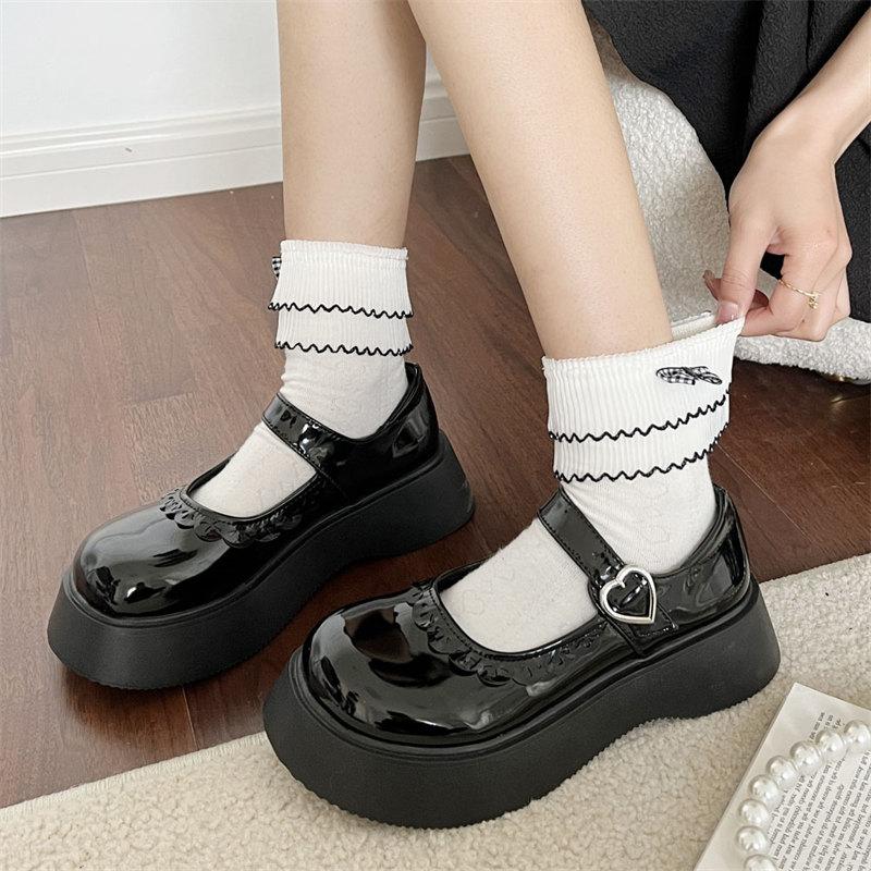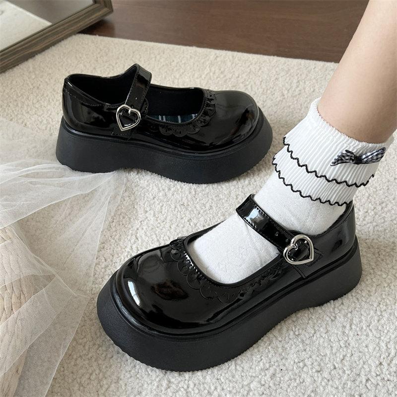 Модные черные туфли в стиле Лолиты на толстой платформе, женские, новые, с пряжкой в форме сердца, маленькие кожаные туфли для студентов в японском стиле, косплей, JK Uniform